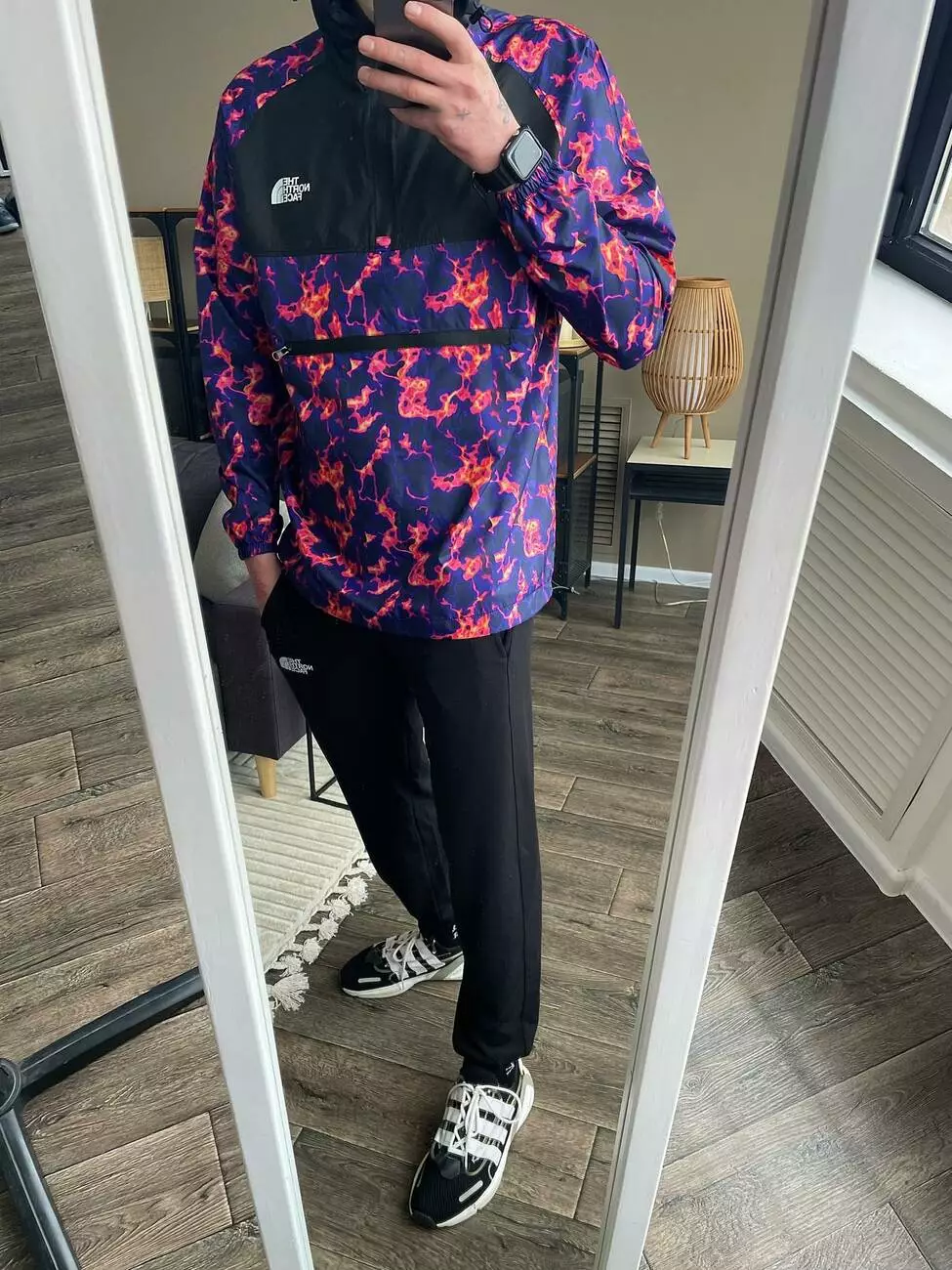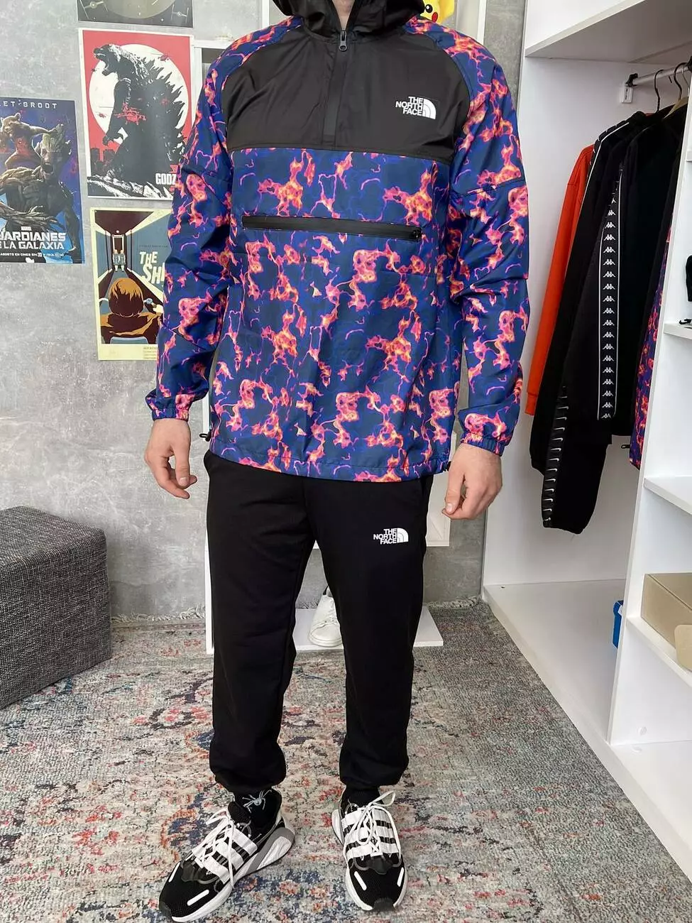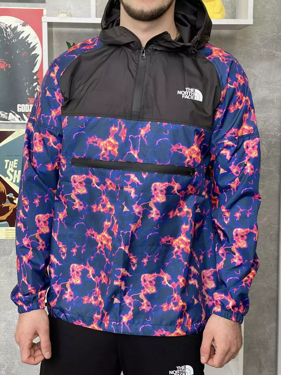 Анорак з принтованої тканини з високим коміром. Застібається на блискавку спереду. Велика кишеня з блискавкою спереду.