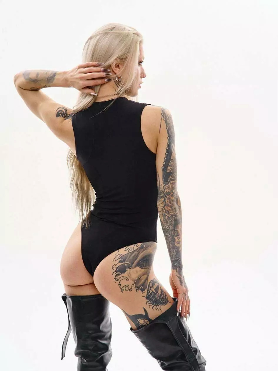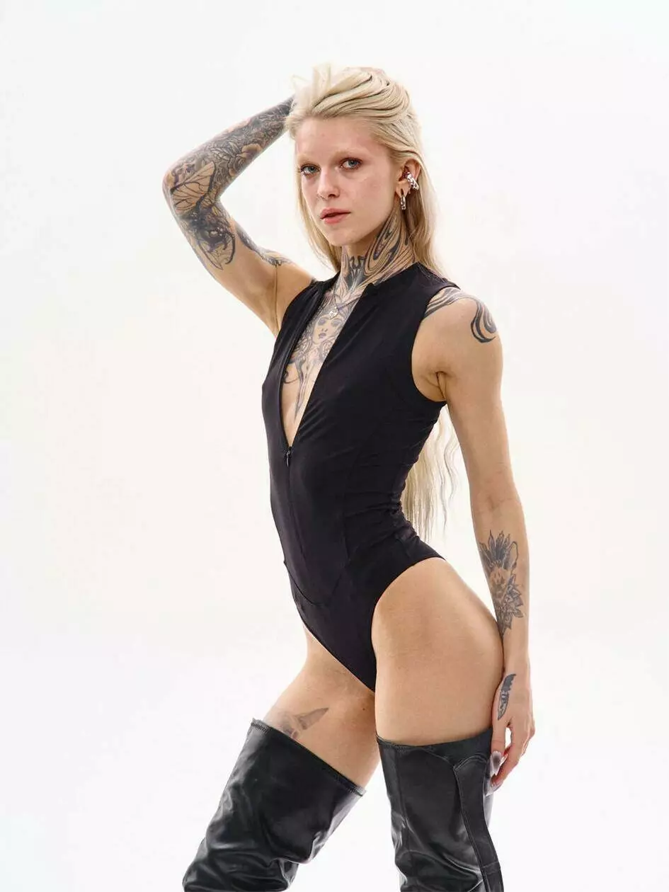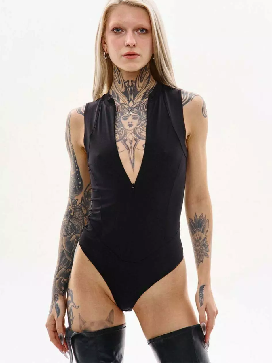 Боді з коміром-стійкою і блискавкою спереду. Рельєфи забезпечують