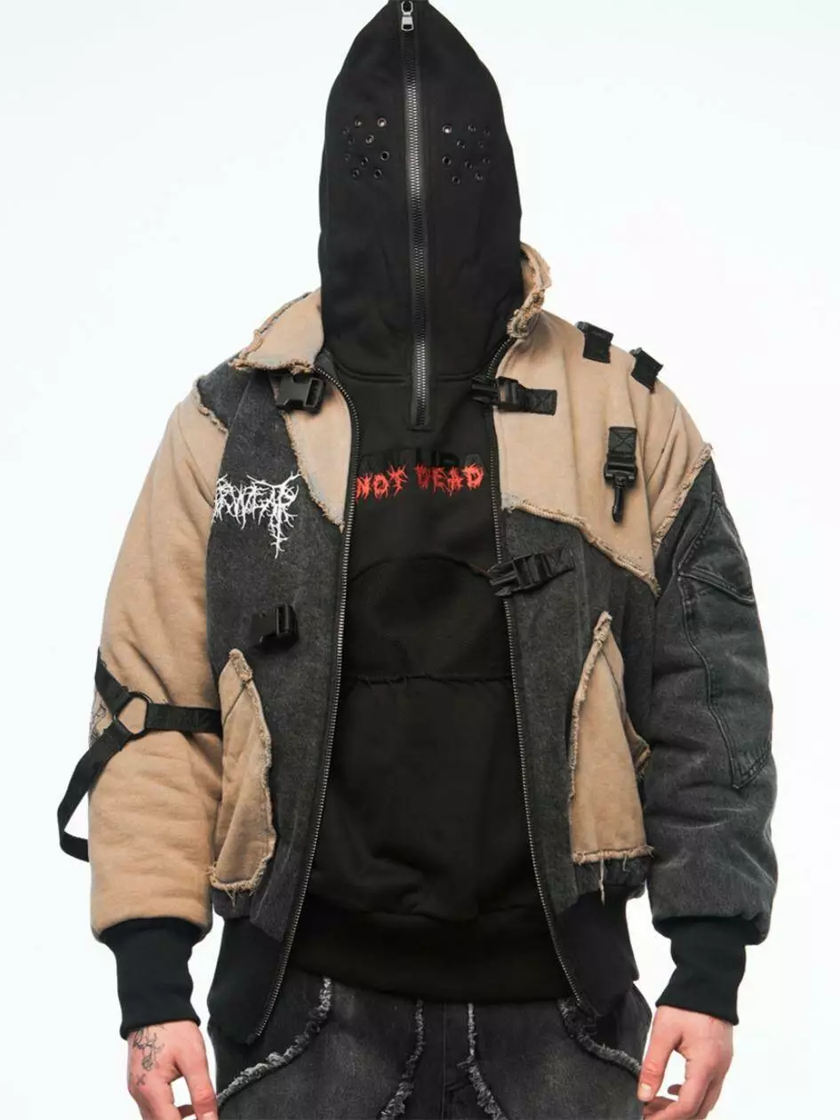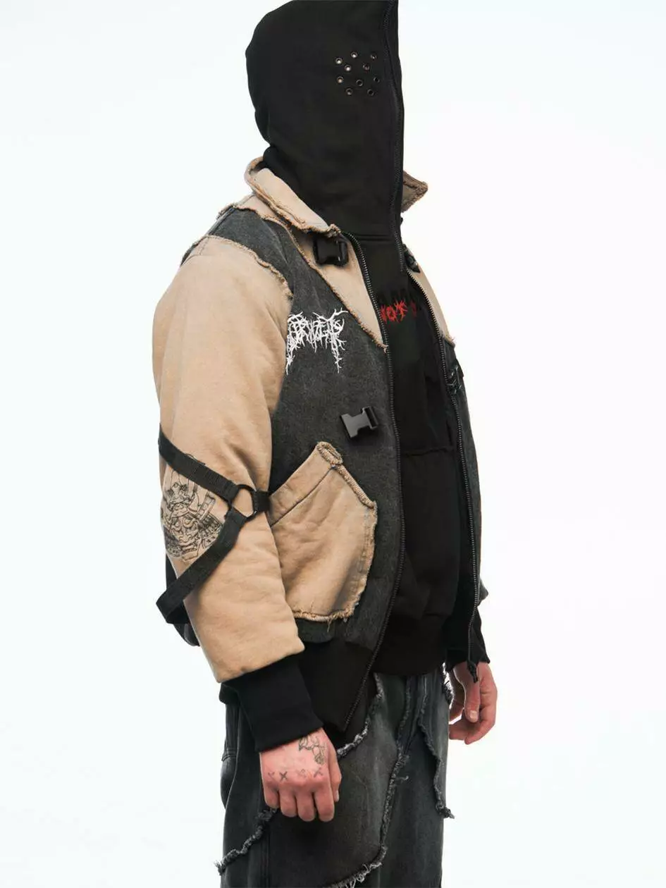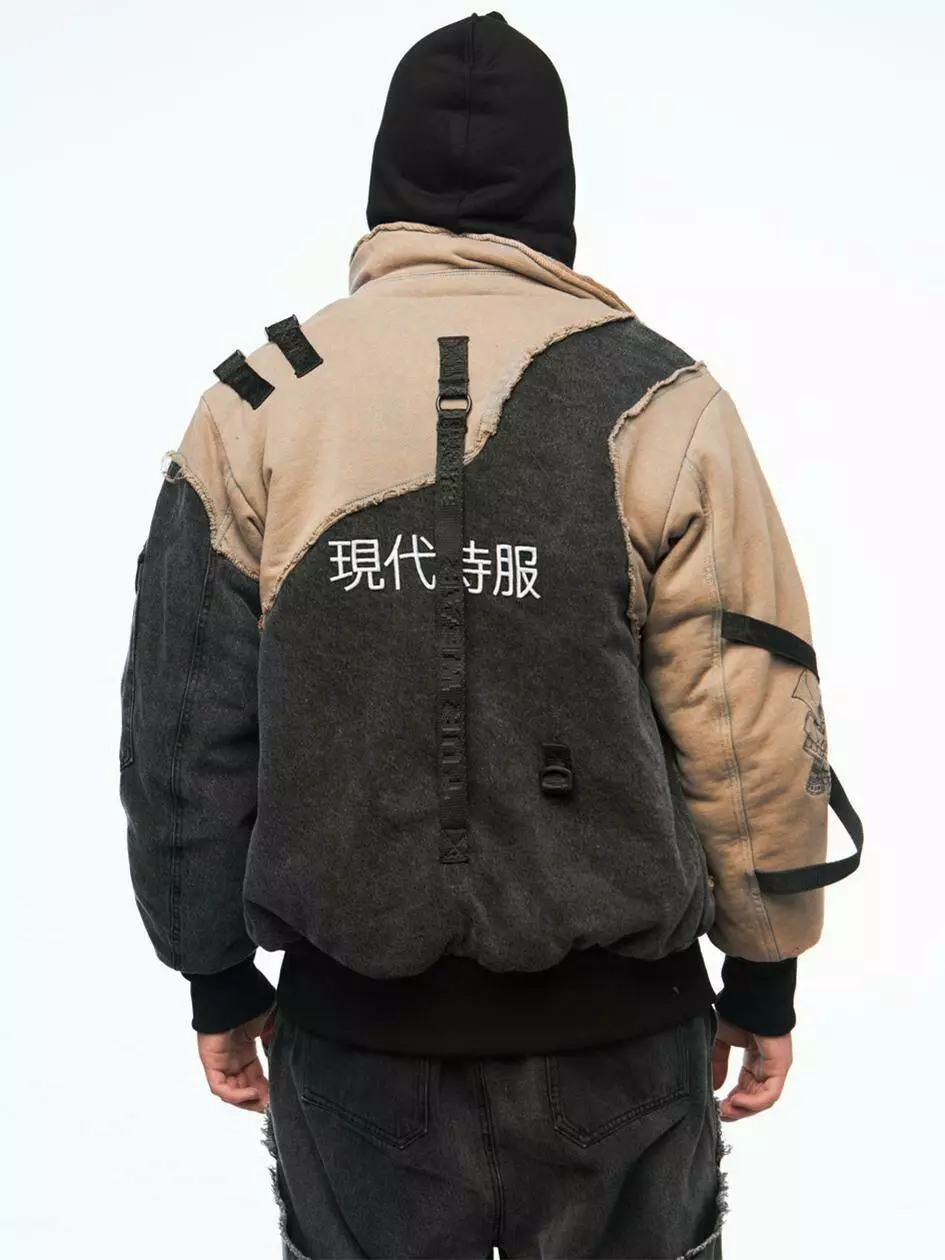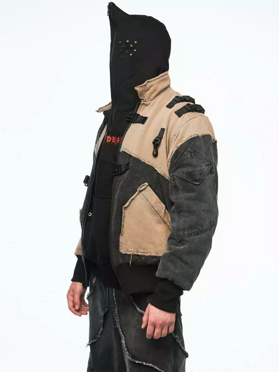 Варений бомбер довжиною по пояс з комбінованих тканин: джинси та