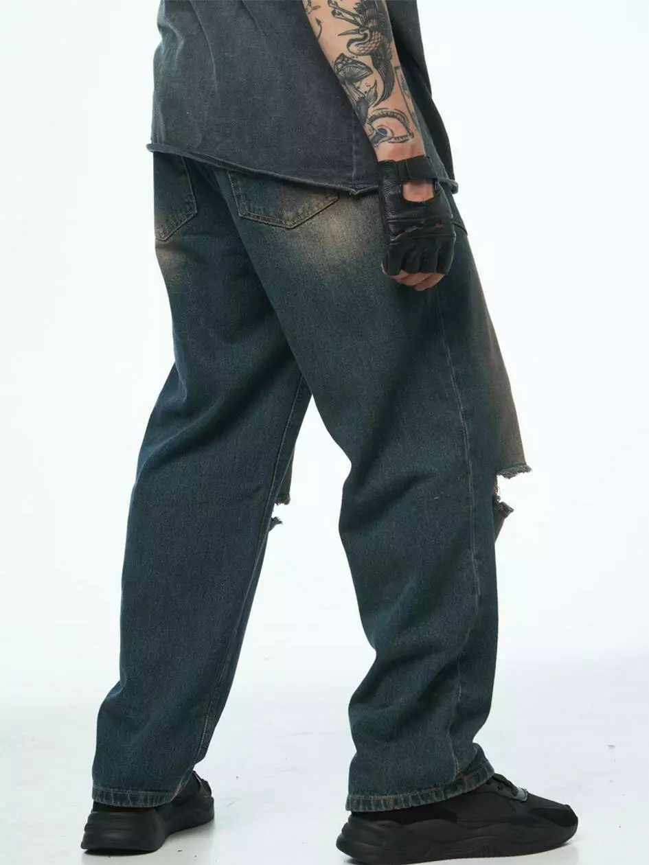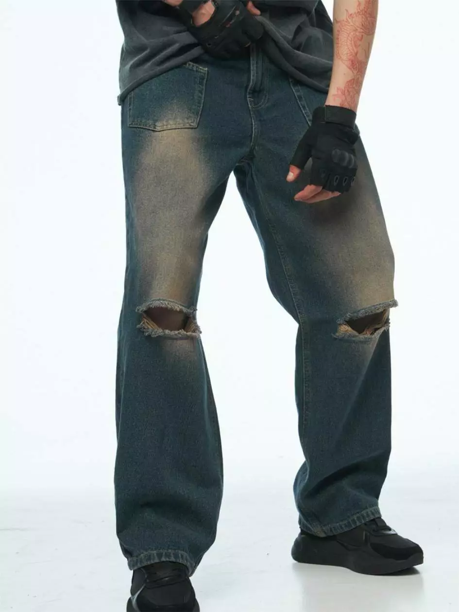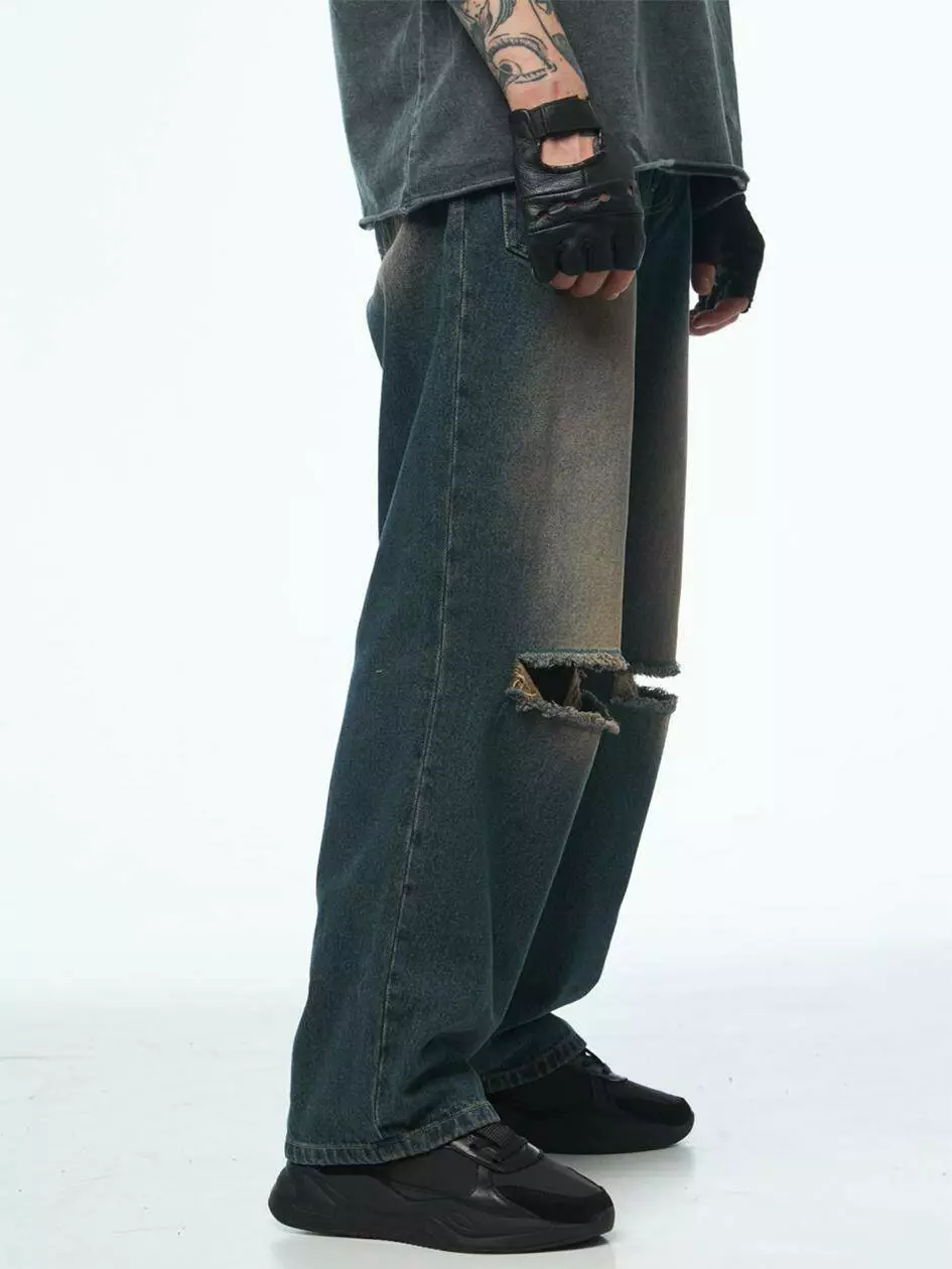 Варені мішкуваті джинси з ефектом потертостей і розривів на
