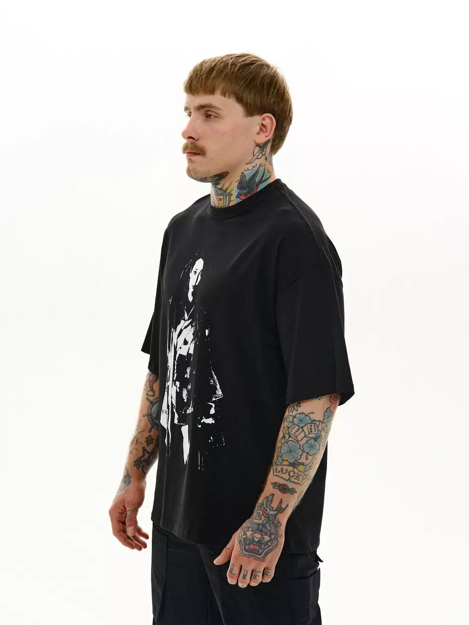 грудях — великий шовкотрафаретний принт, що задає настрій з першого