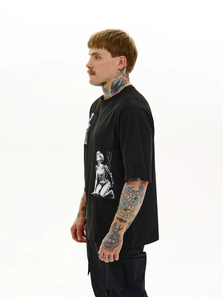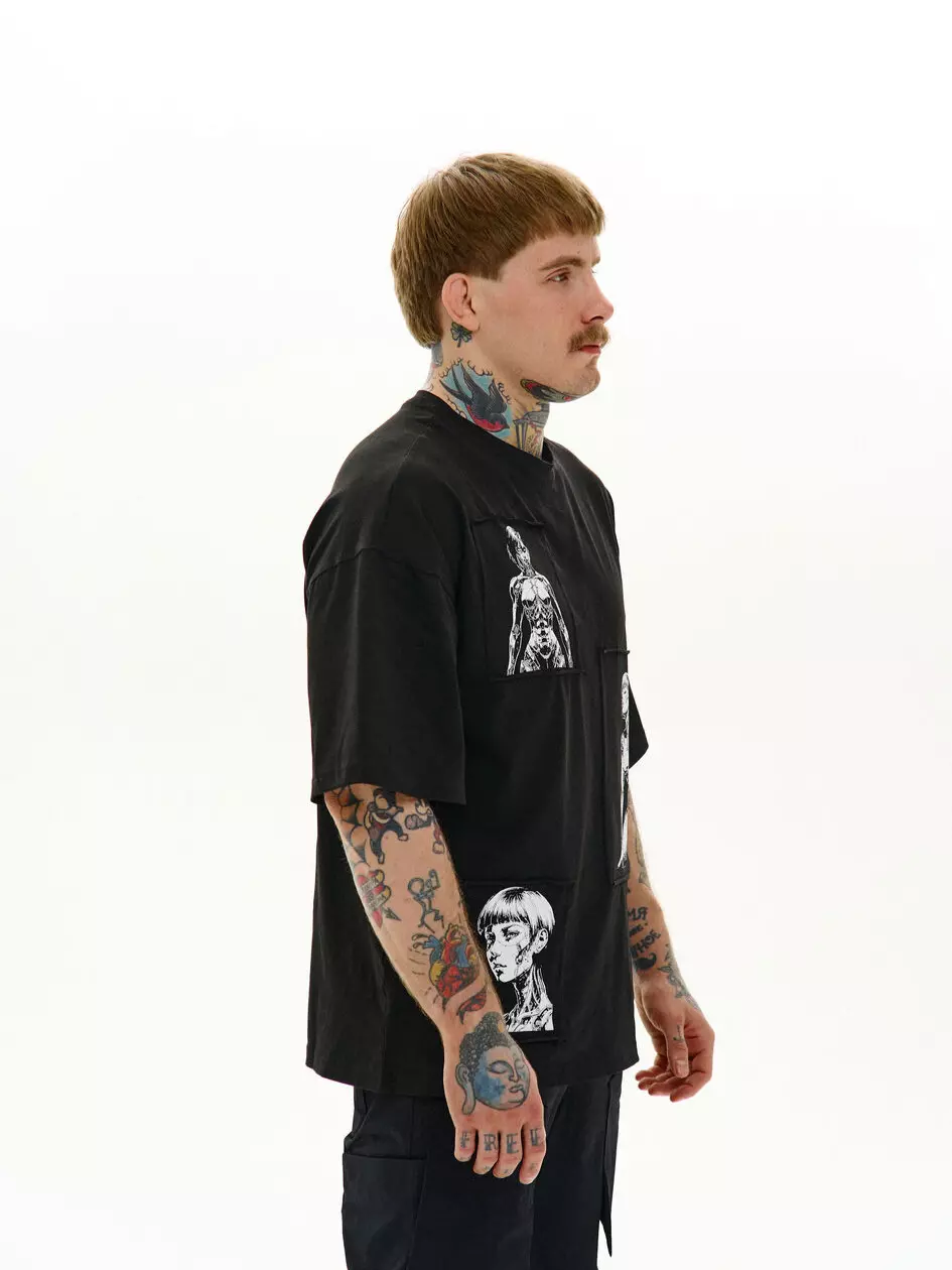 Три окремі принти виконані на нашивках і закріплені на виробі —