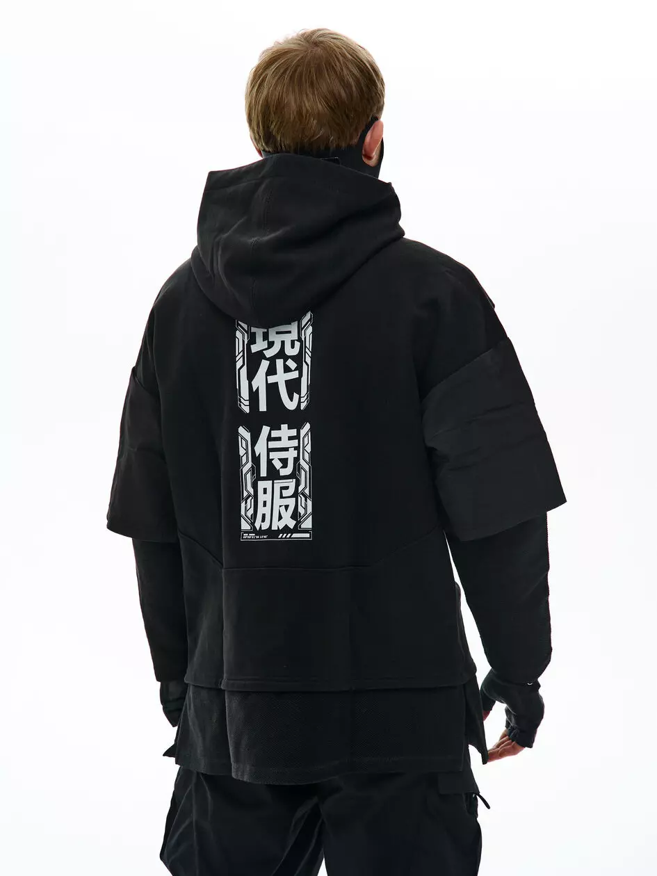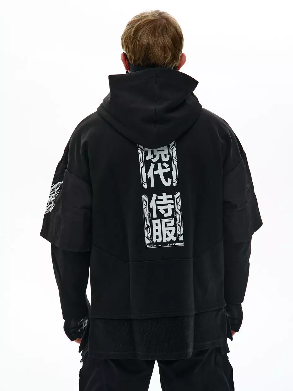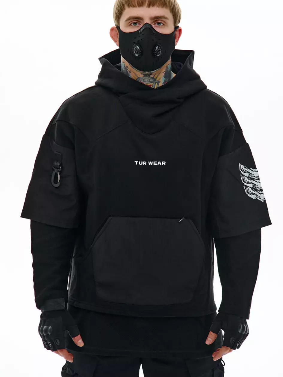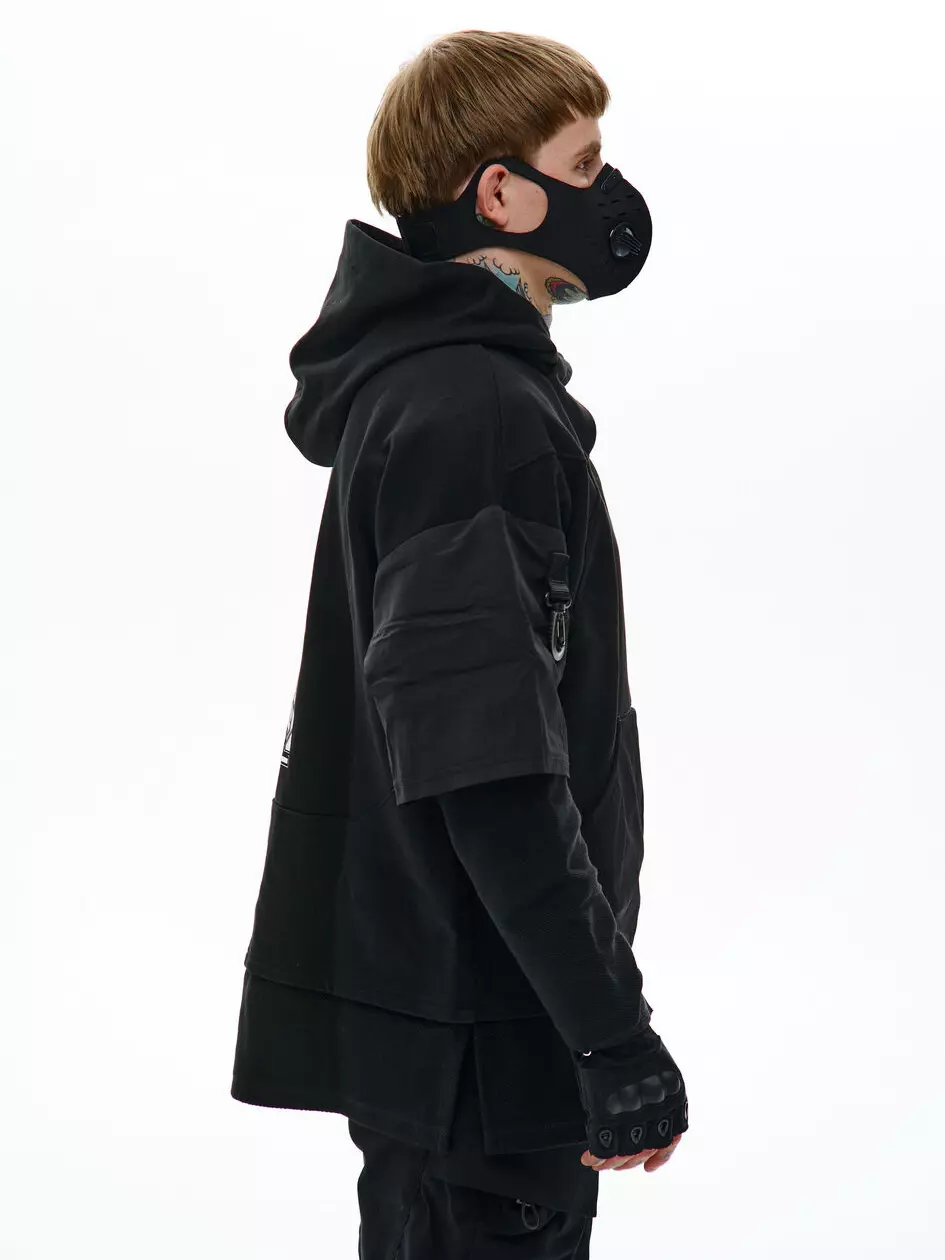 Худі оверсайз-крою з глибоким капюшоном. Поєднує щільну тринитку