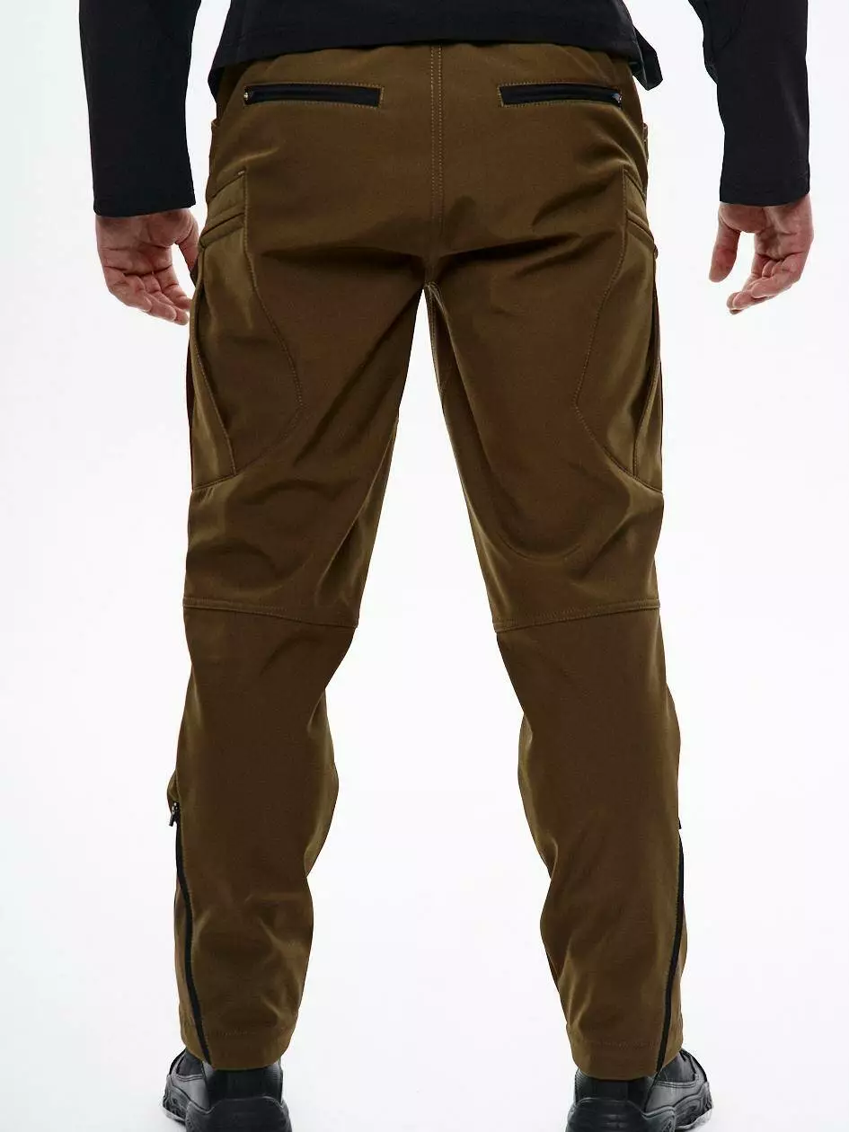 Коліна мають анатомічні виточки для свободи руху, внизу — блискавки для регулювання ширини. У зоні сидіння вшита ластовиця для максимальної зручності в активному русі.