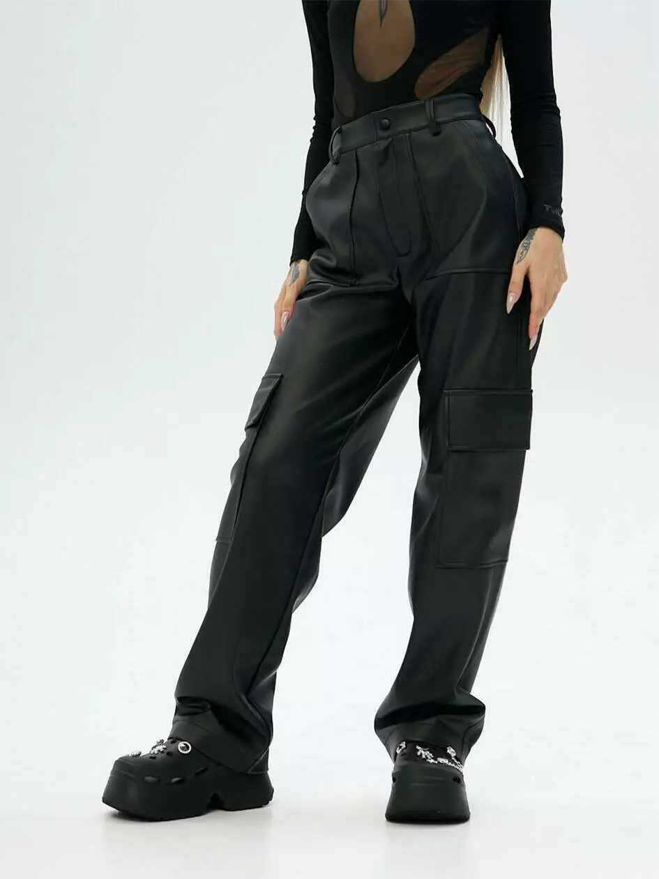 Широкі карго низької посадки з шкірзаму на замші. По боках дві