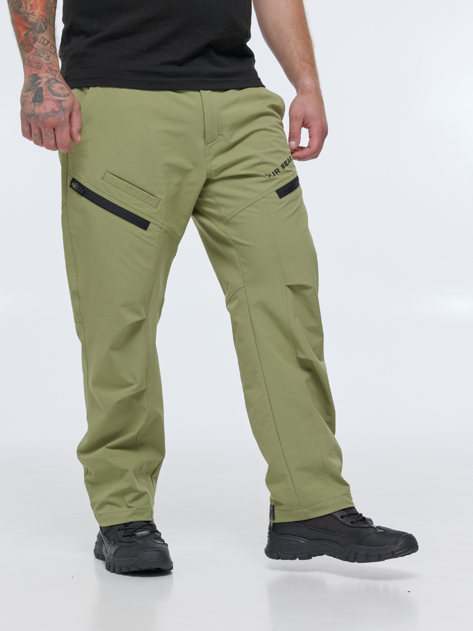 Штани вільної посадки та прямого крою, створені для тих, хто цінує свободу руху й функціональність. Пояс — зі шлівками під ремінь та вбудованою резинкою для зручної посадки. З правого боку під поясом — вшите напівкільце для карабінів, підсумків чи брелоків. У гульфику — блискавка YKK.