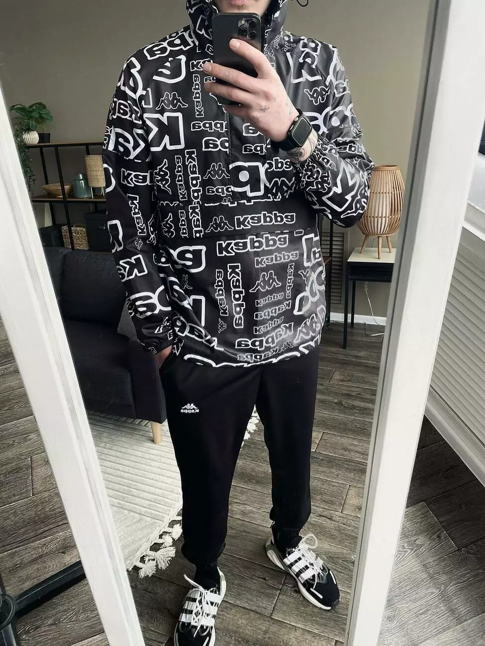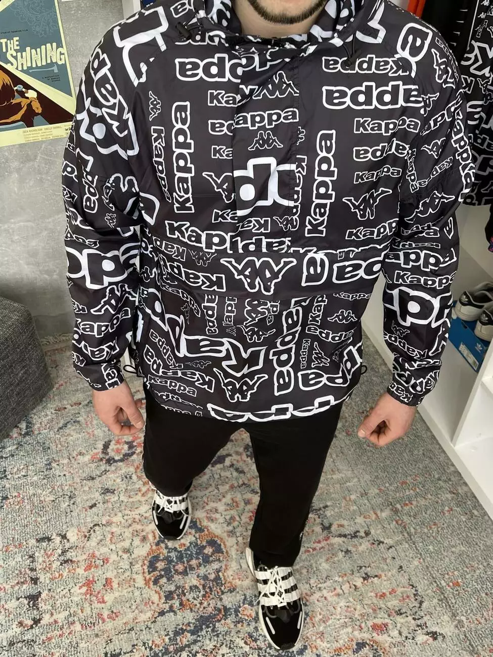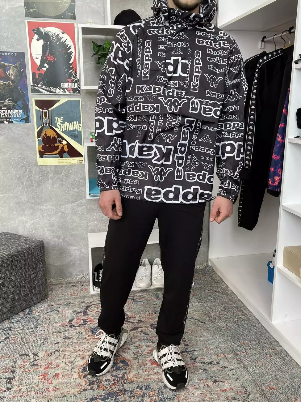 Анорак з принтованої тканини з високим коміром. Застібається на