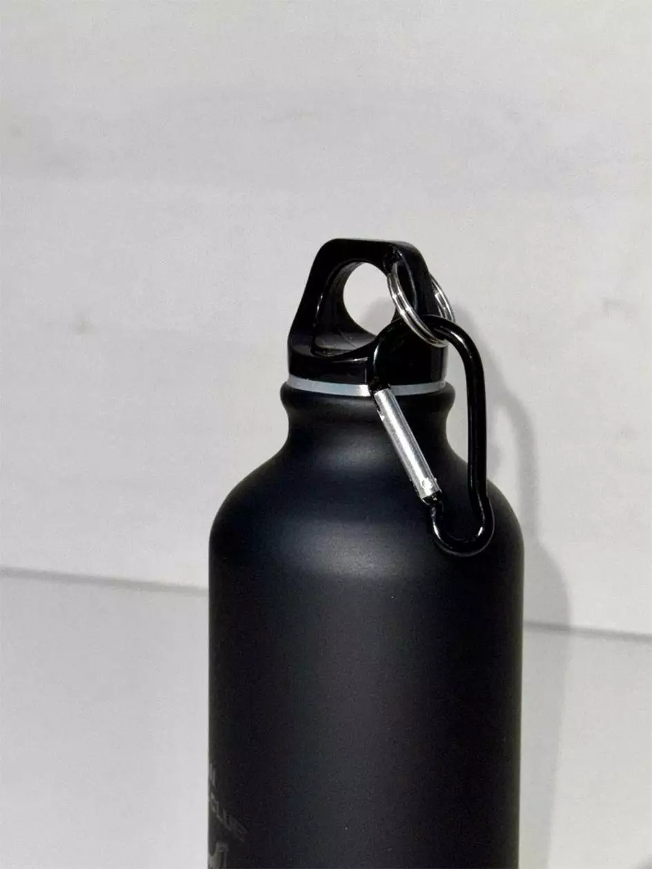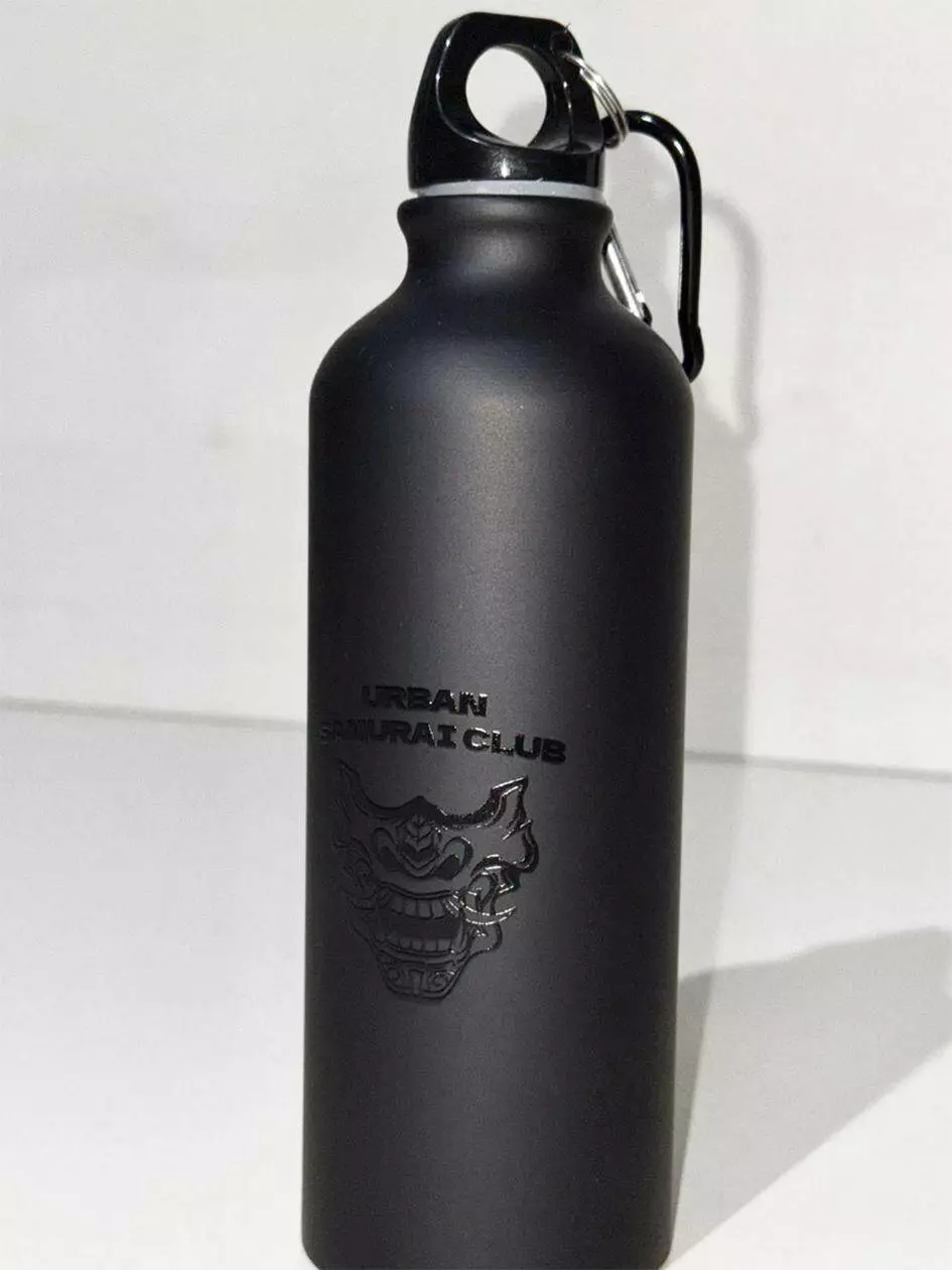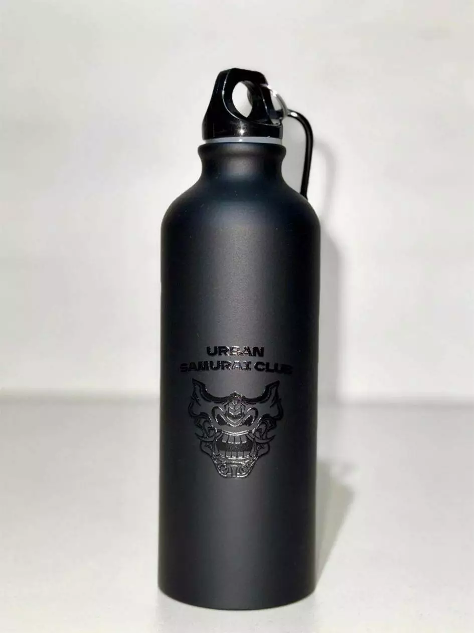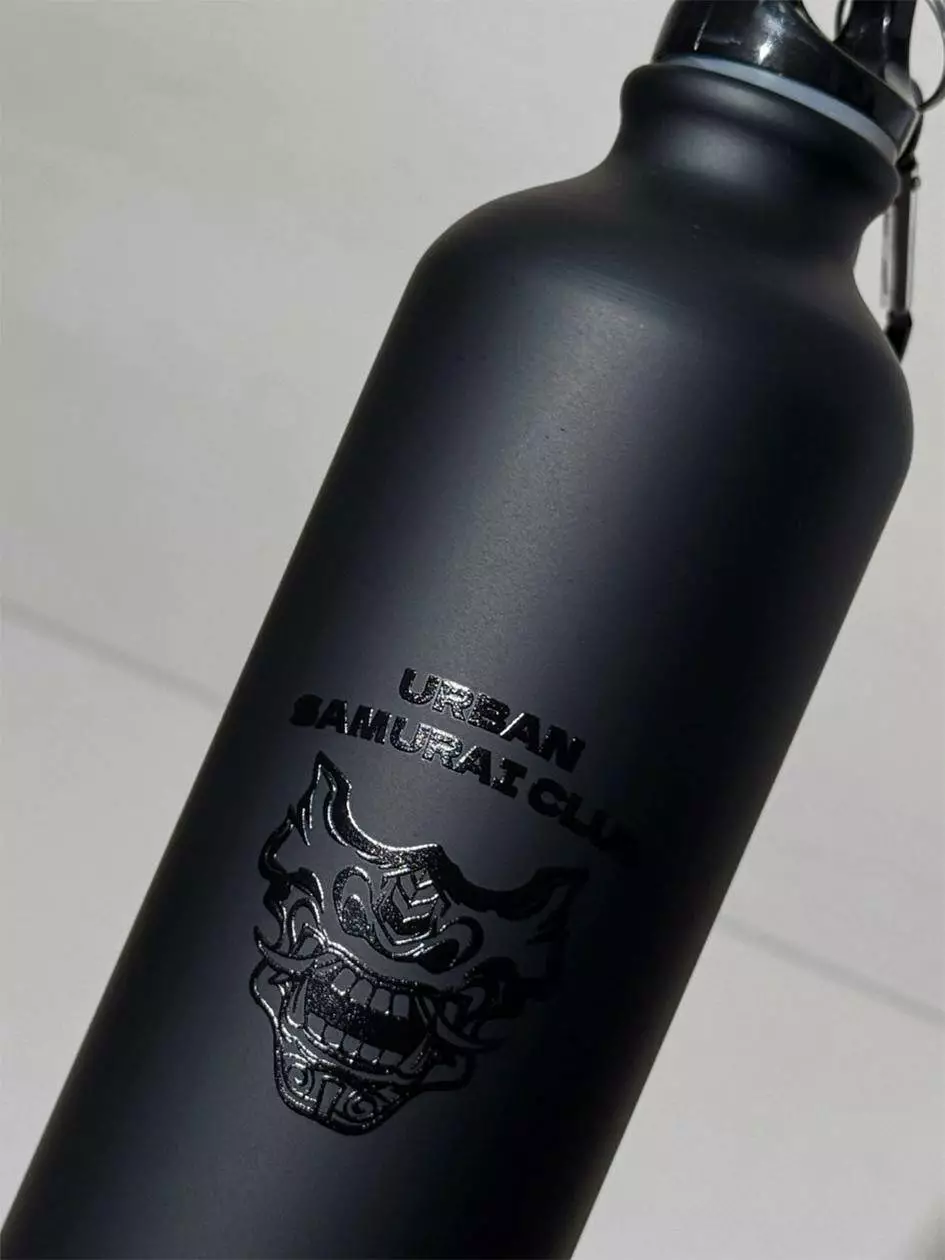Металева пляшка для води, матова чорна з глянцевим малюнком, з