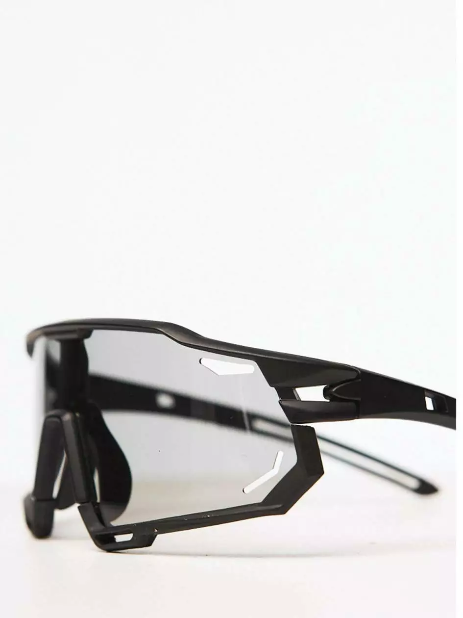 Окуляри спортивні сонцезахисні фотохромні в чорній оправі, полікарбонатні лінзи захистять очі від піску, вітру та сонця. Мають захист від ультрафіолету UV 400. Чохол у комплекті.