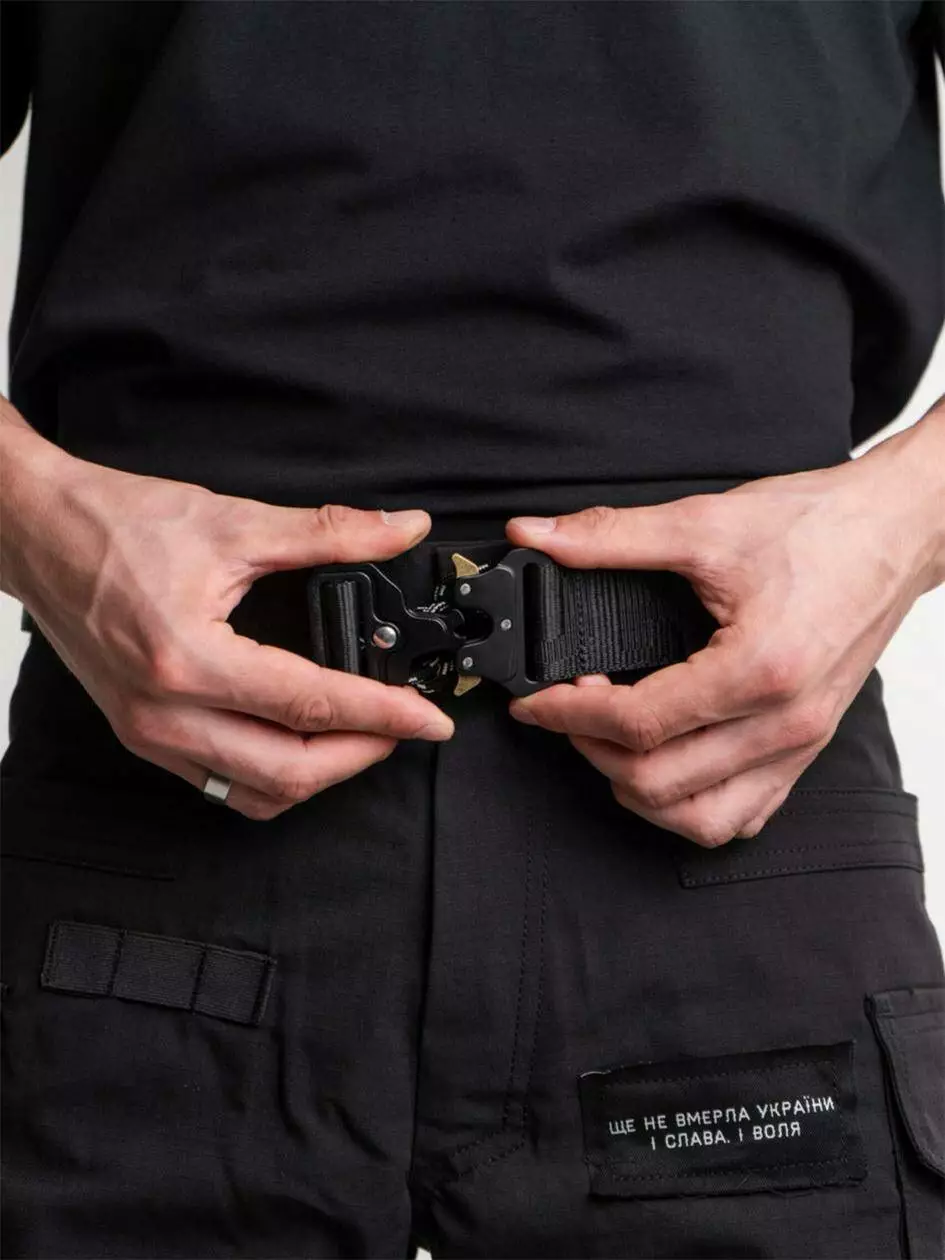 Тактичний ремінь зі зносостійкого нейлону з фірмовим брендуванням.