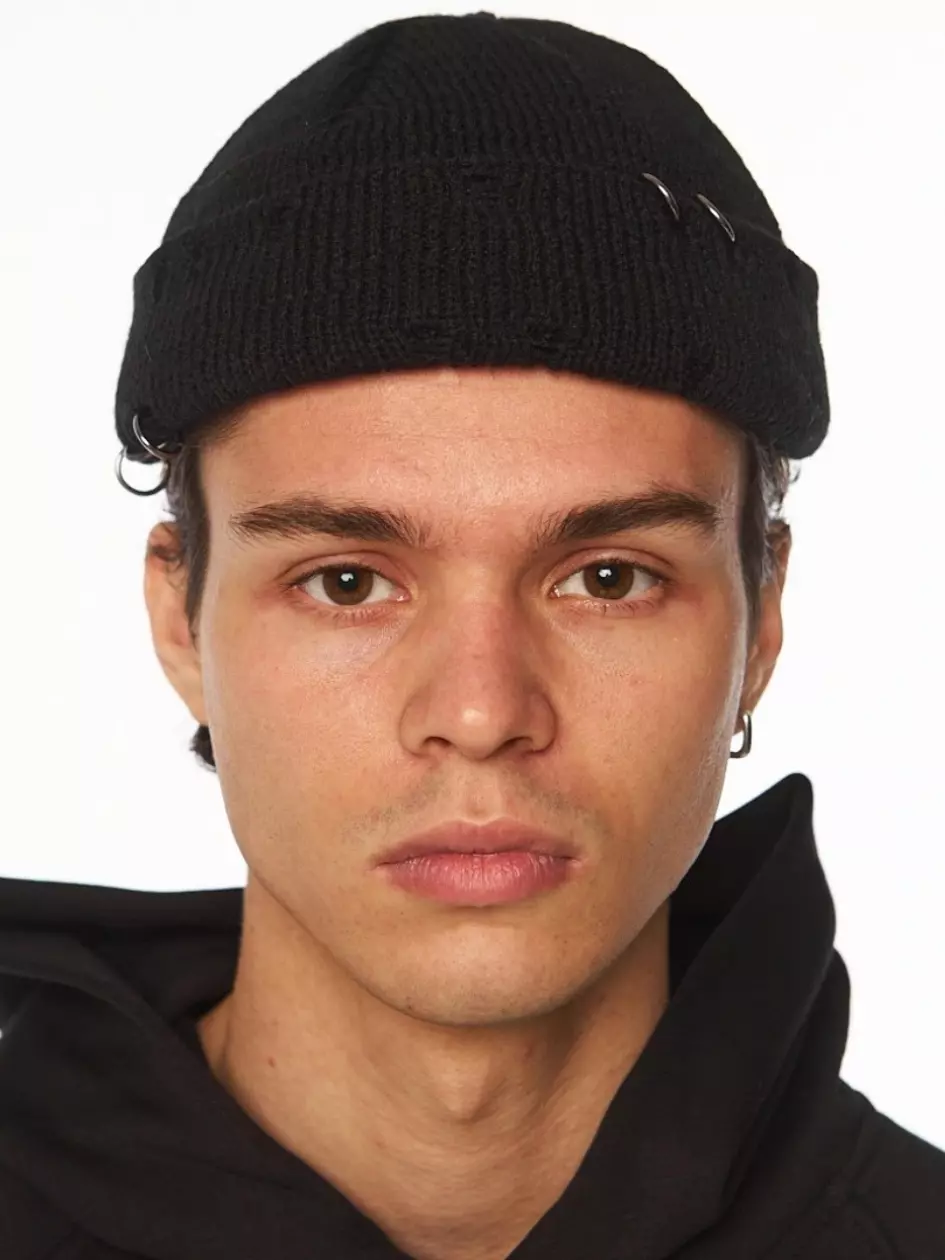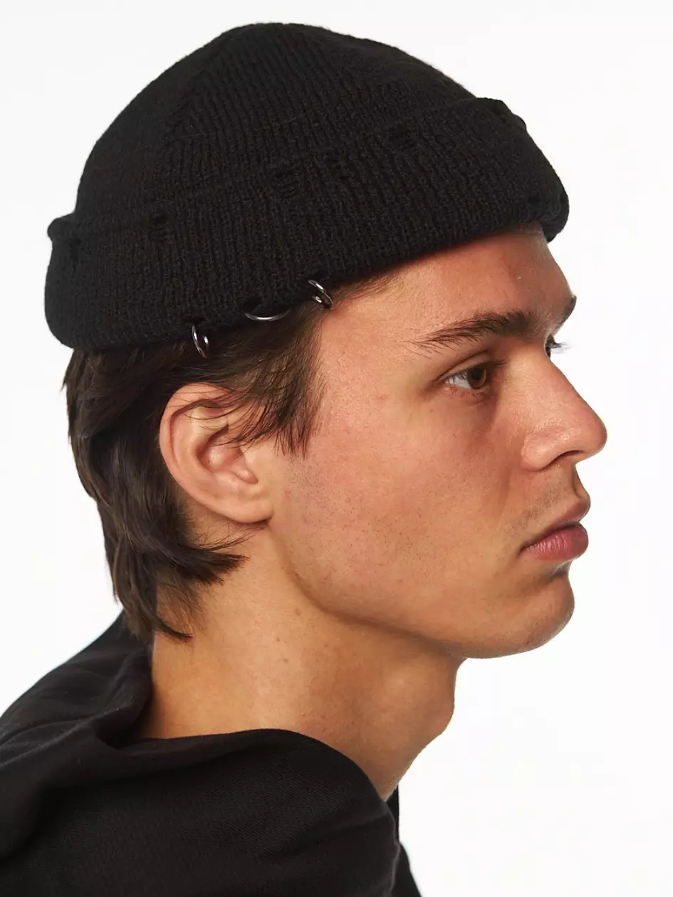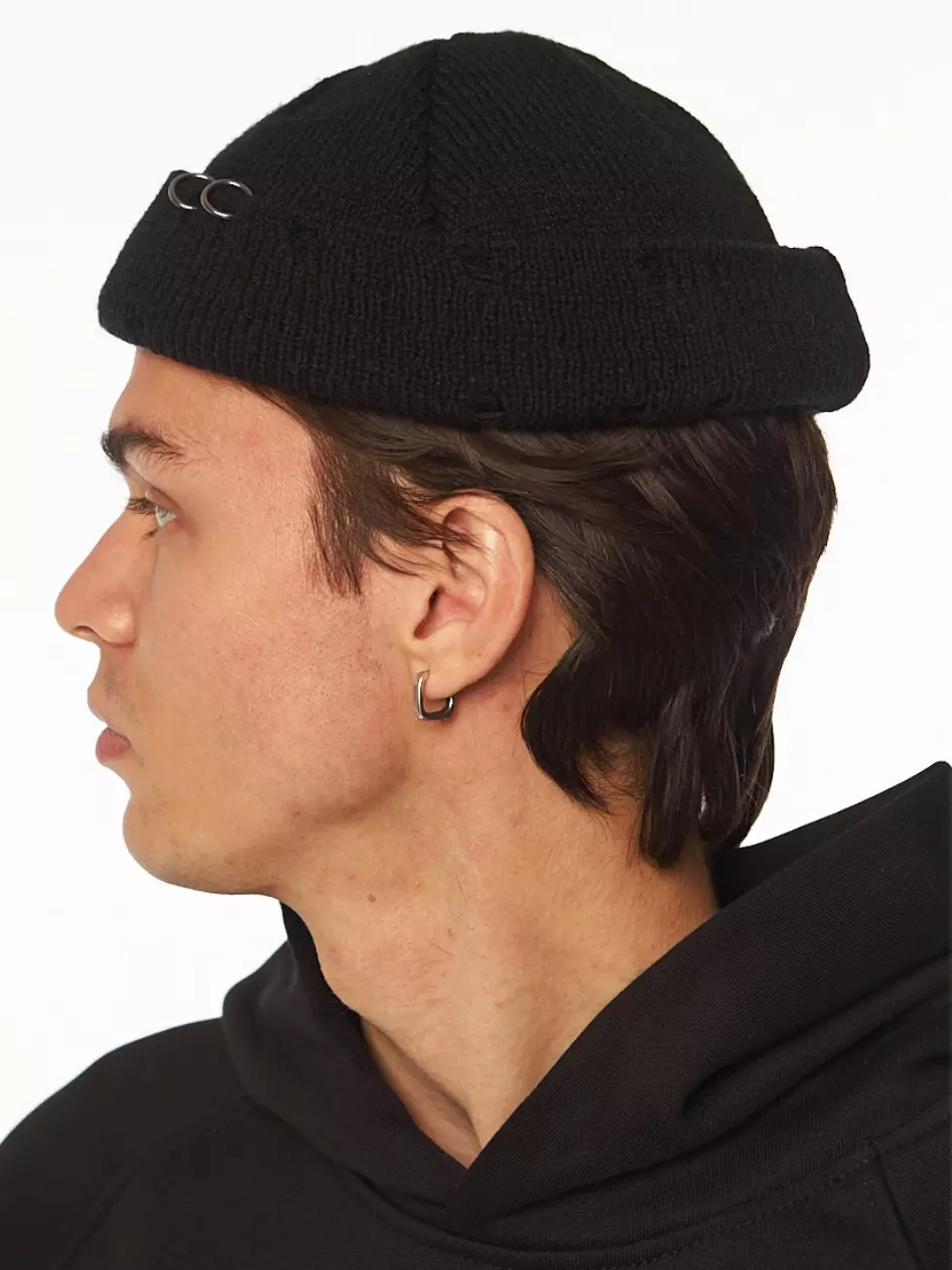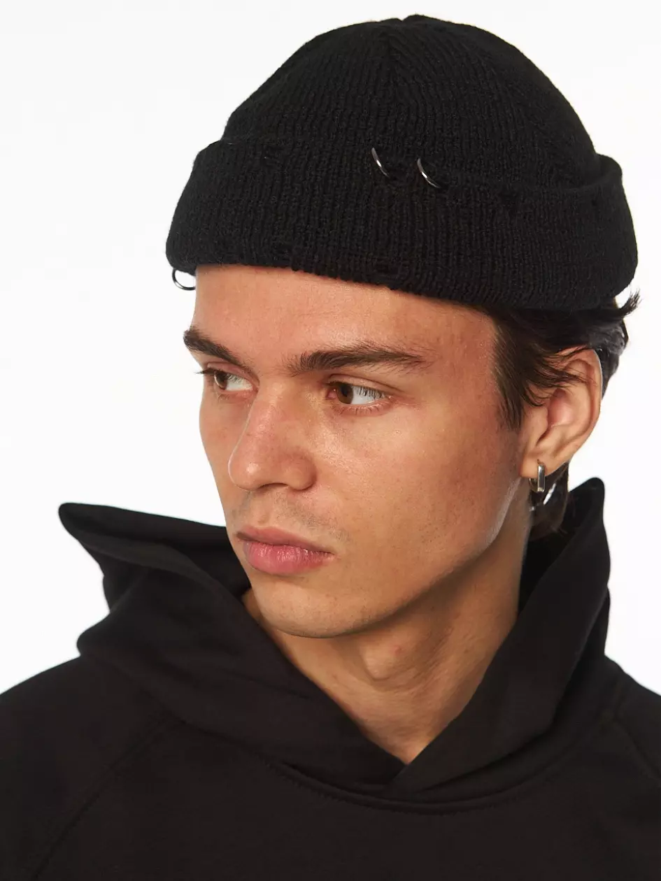 Шапка біні унісекс з розрізами і металевими кільцями. Металеві