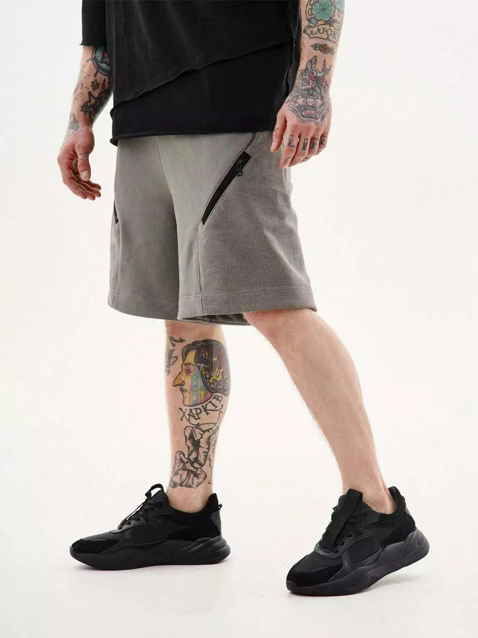 Шорти з кишенями на блискавках "Данфу", сірий