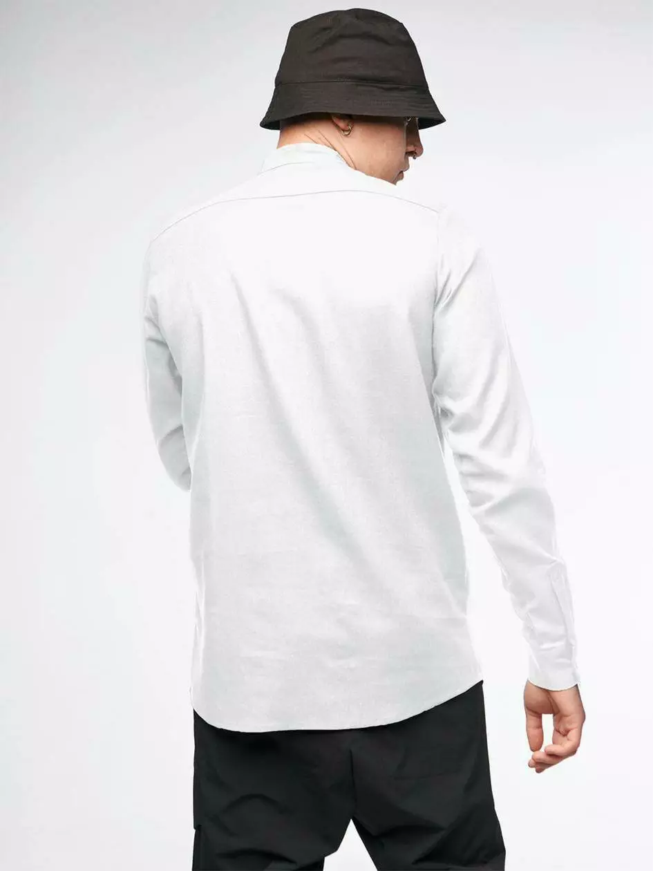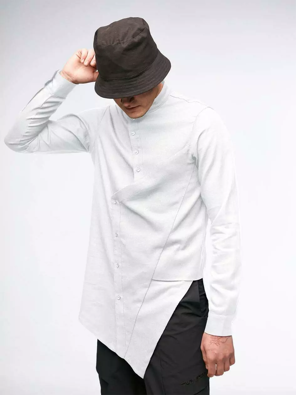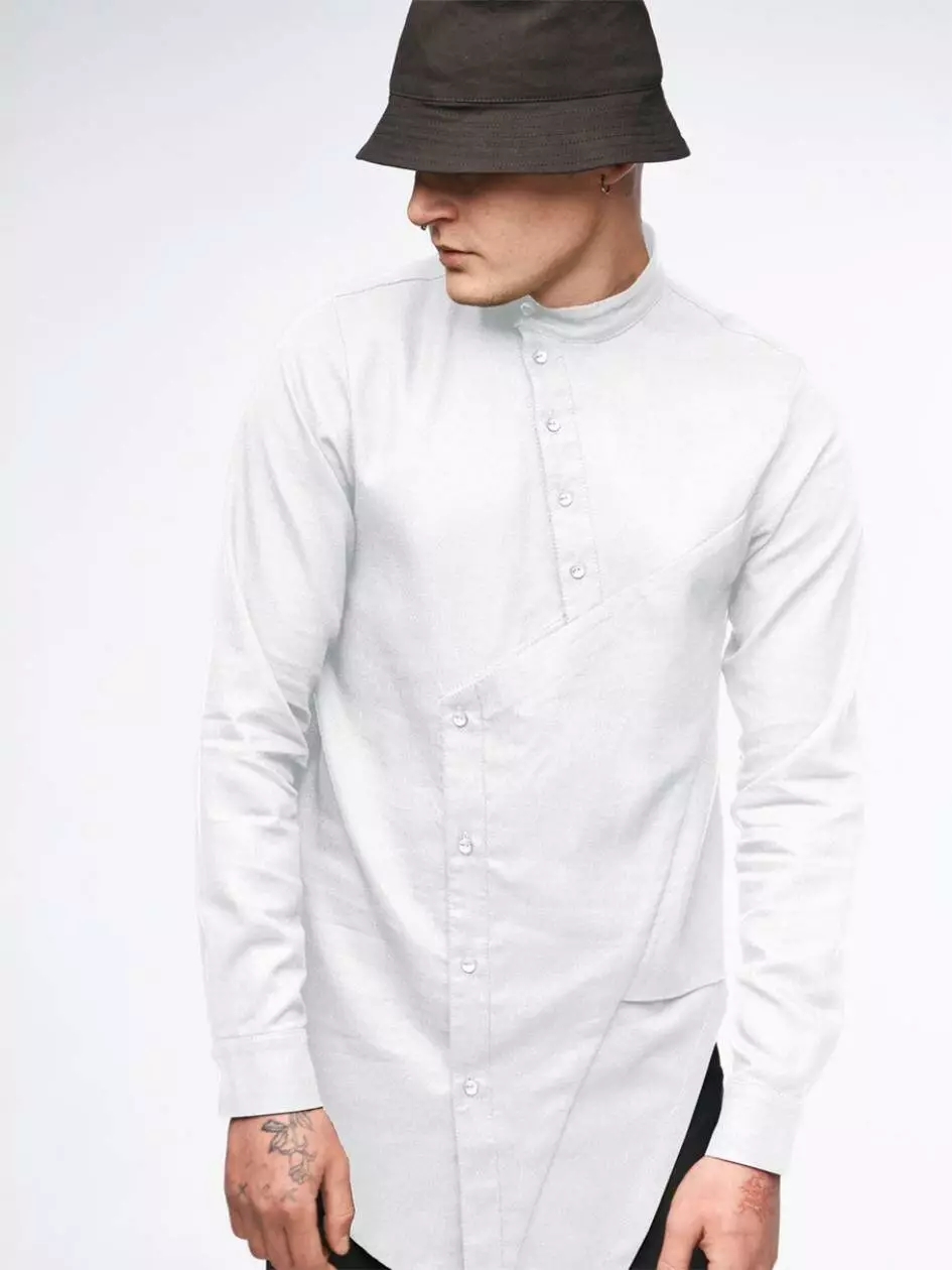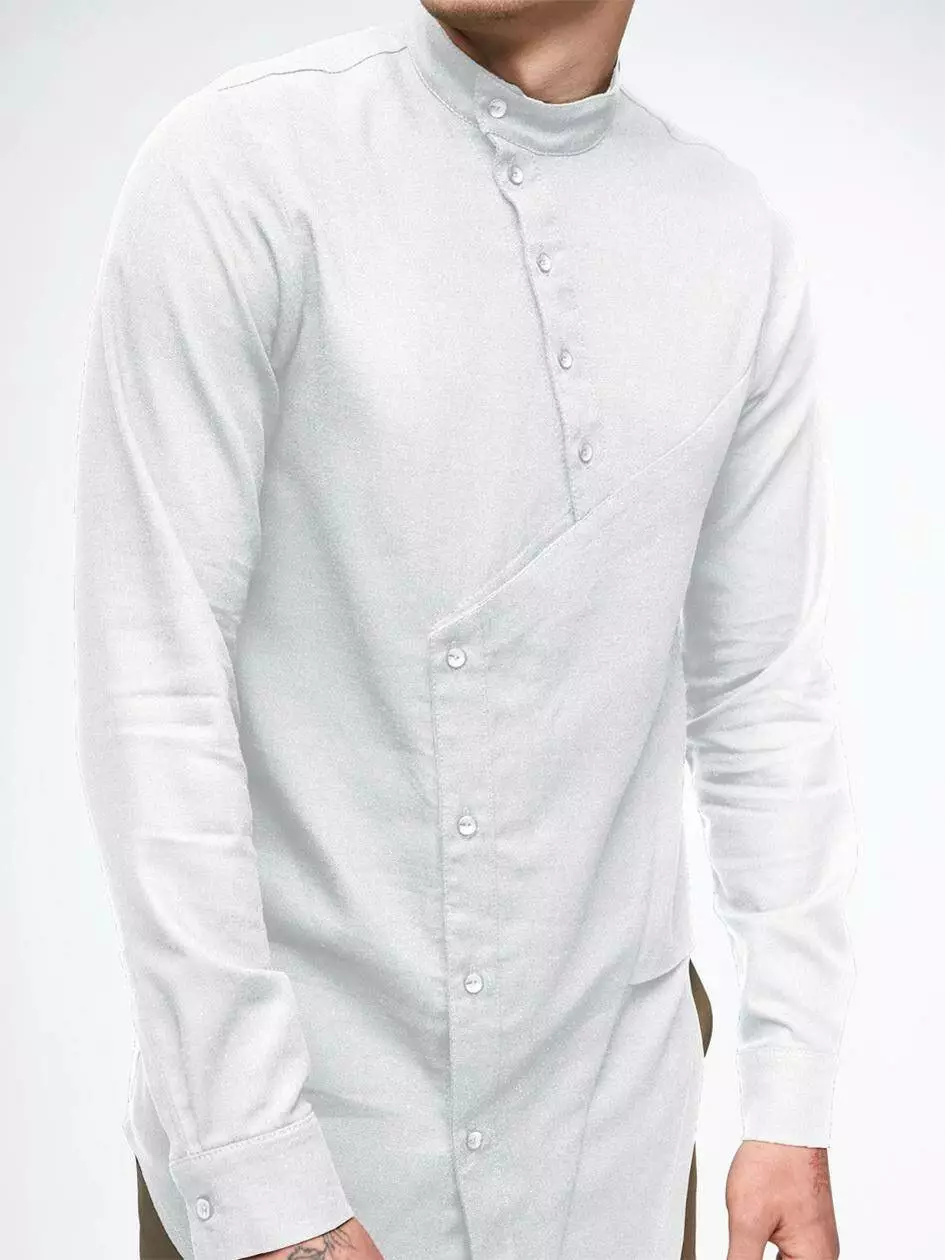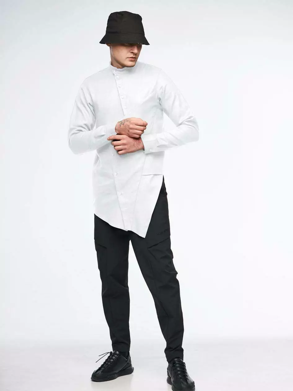 Бавовняно-лляна сорочка асиметричного крою з коміром-стійкою та