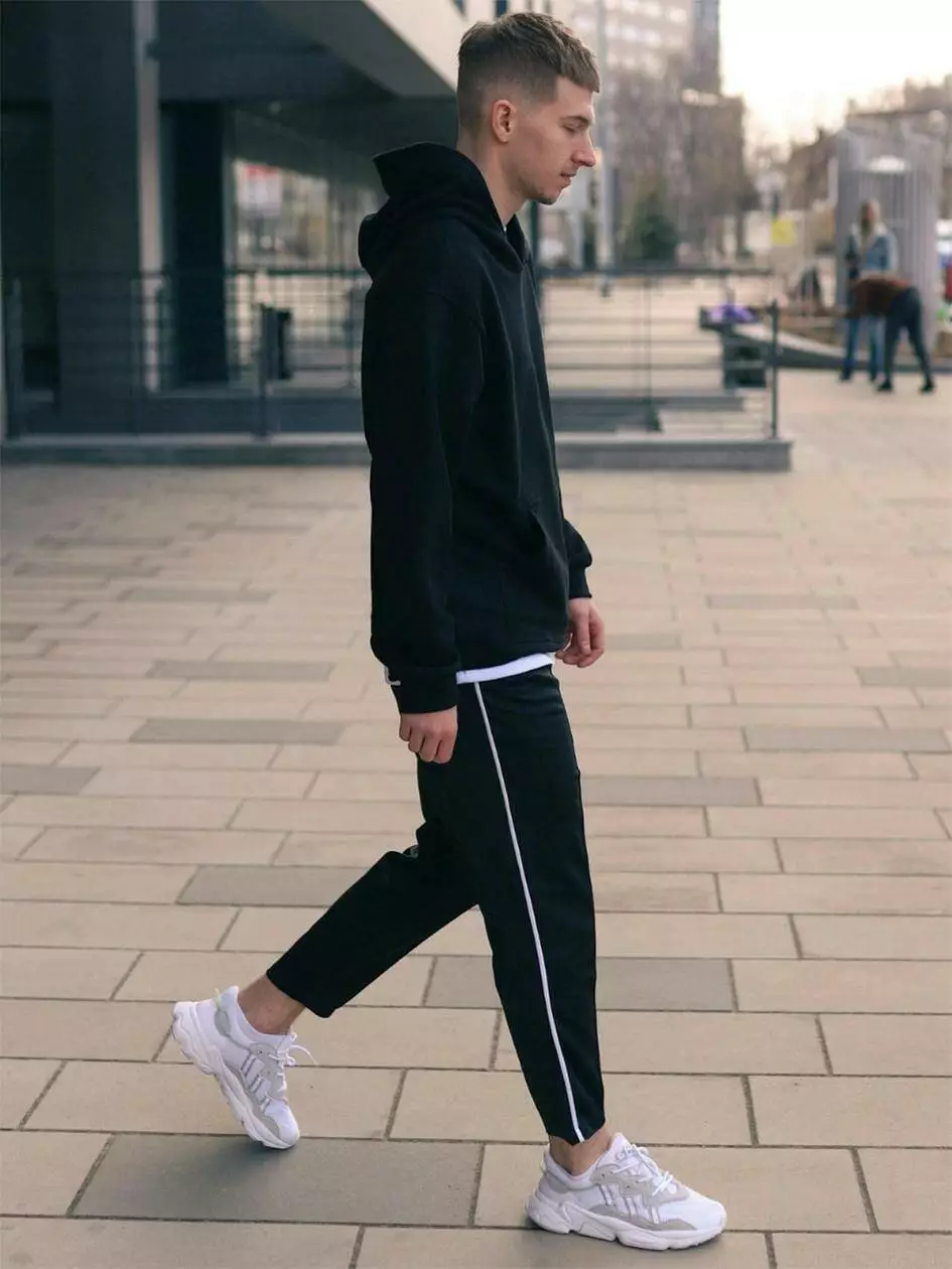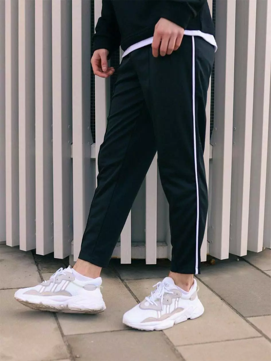 Штани з резинкою та шнурком у поясі для регулювання посадки. Крій