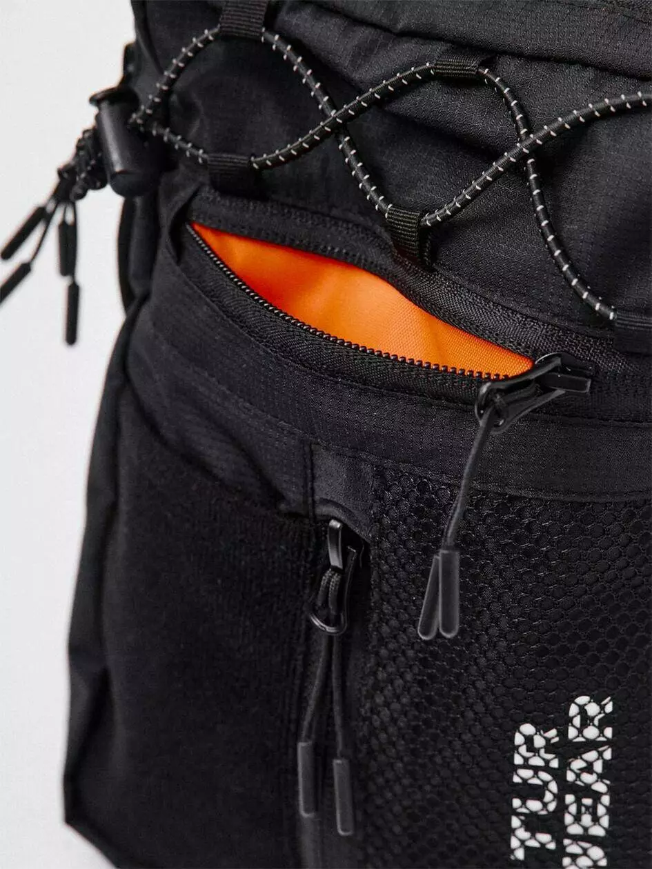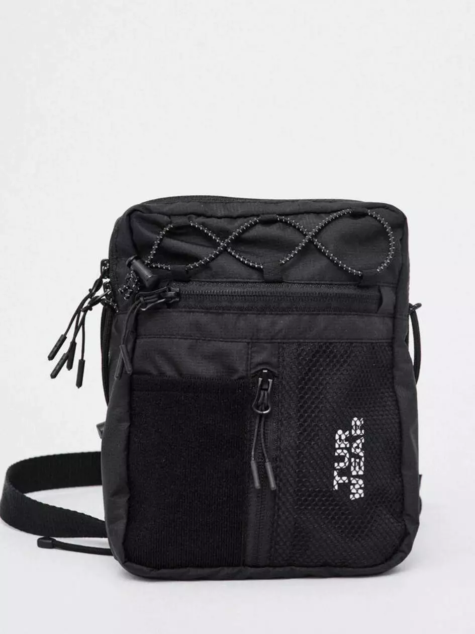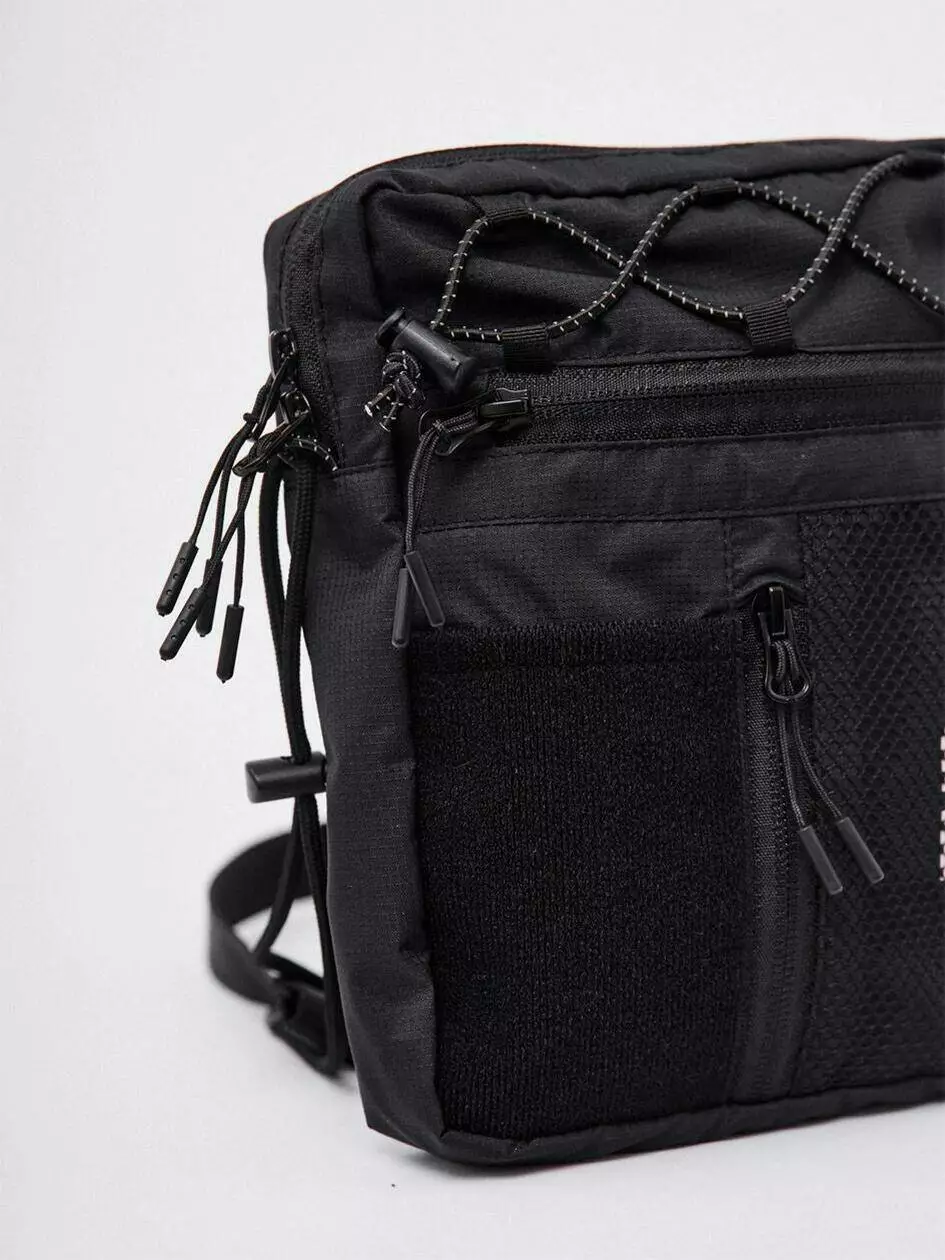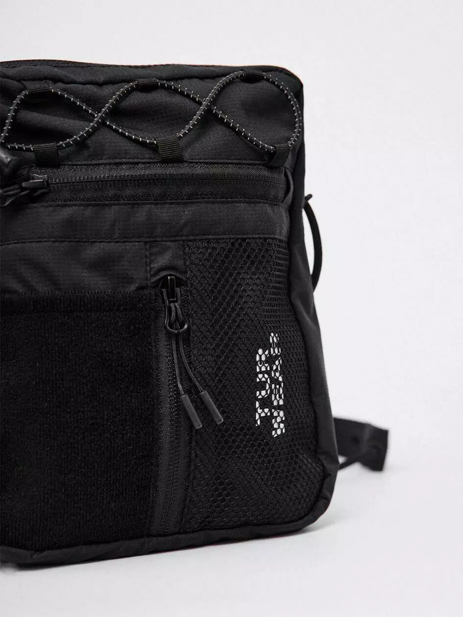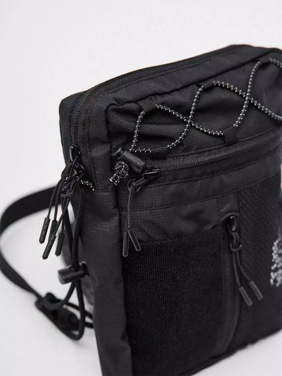Сумка вертикального формату, ідеальна для дрібних речей, таких як телефон, ключі, гаманець і документи. Має основний відділ на блискавці з двома бігунками, в якому розташовано один великий відділ і дві маленькі кишені. На фронтальній частині є горизонтальна та вертикальна кишені на блискавці. Біля вертикальної кишені розміщена нашивка з велкро тканини, а поруч — деталь з сітки, під якою видніється фірмовий принт білого кольору. Сумка оснащена двома внутрішніми кишенями та перегородкою. Лямка кріпиться за допомогою фурнітури Woojin Plastic, виготовленої з комбінації шнурка та ремінної стрічки. Крючки лямки фіксуються до сумки за допомогою "вушок", виготовлених з рефлективного шнура резинки. На верхній частині сумки є плетіння з рефлективного шнура резинки.