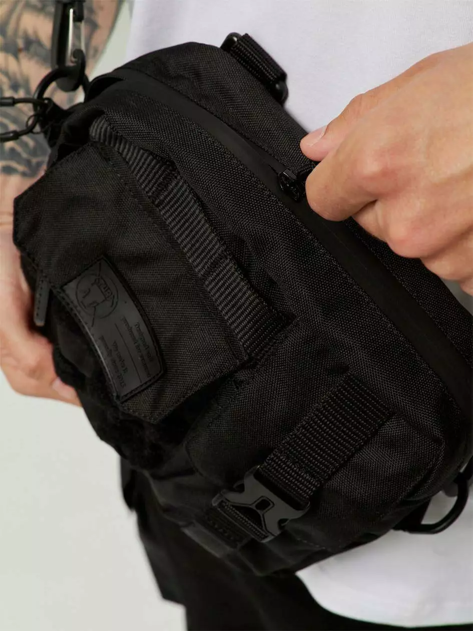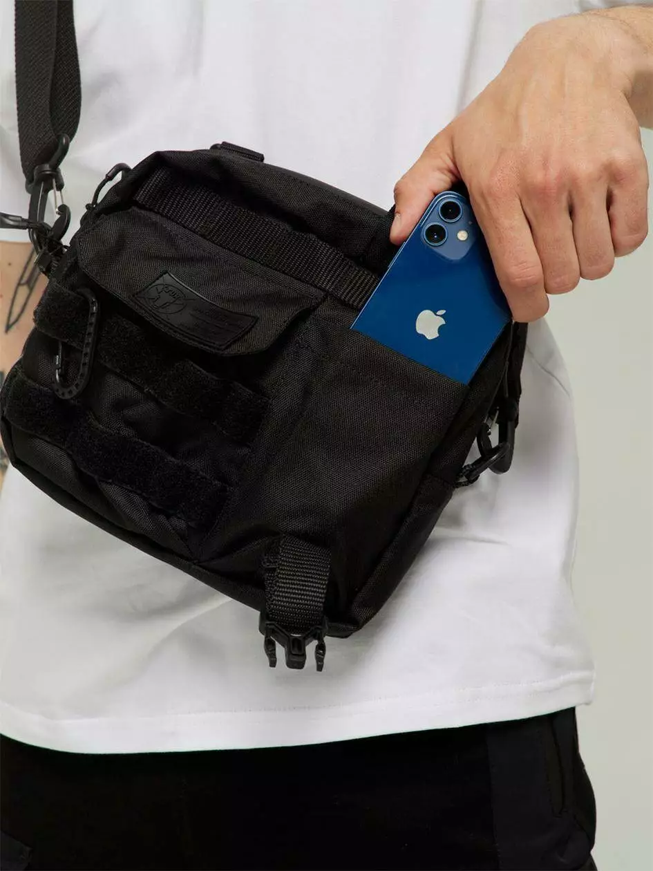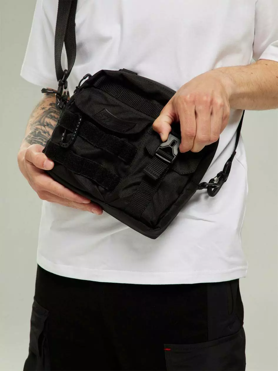 кармані у вигляді гумової бірки матового чорного кольору. Сумку