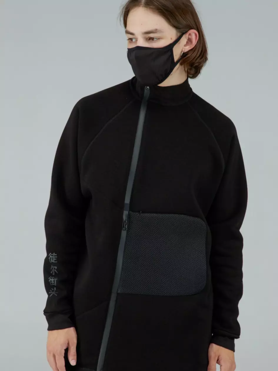 манжетами, а на них — контрастні принти: фірмові ієрогліфи з одного