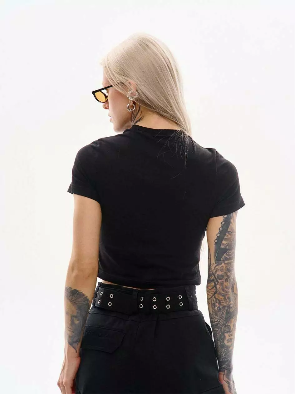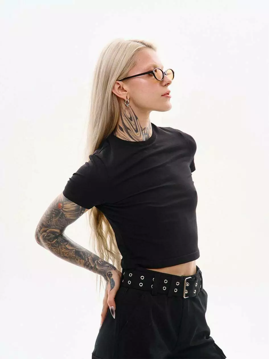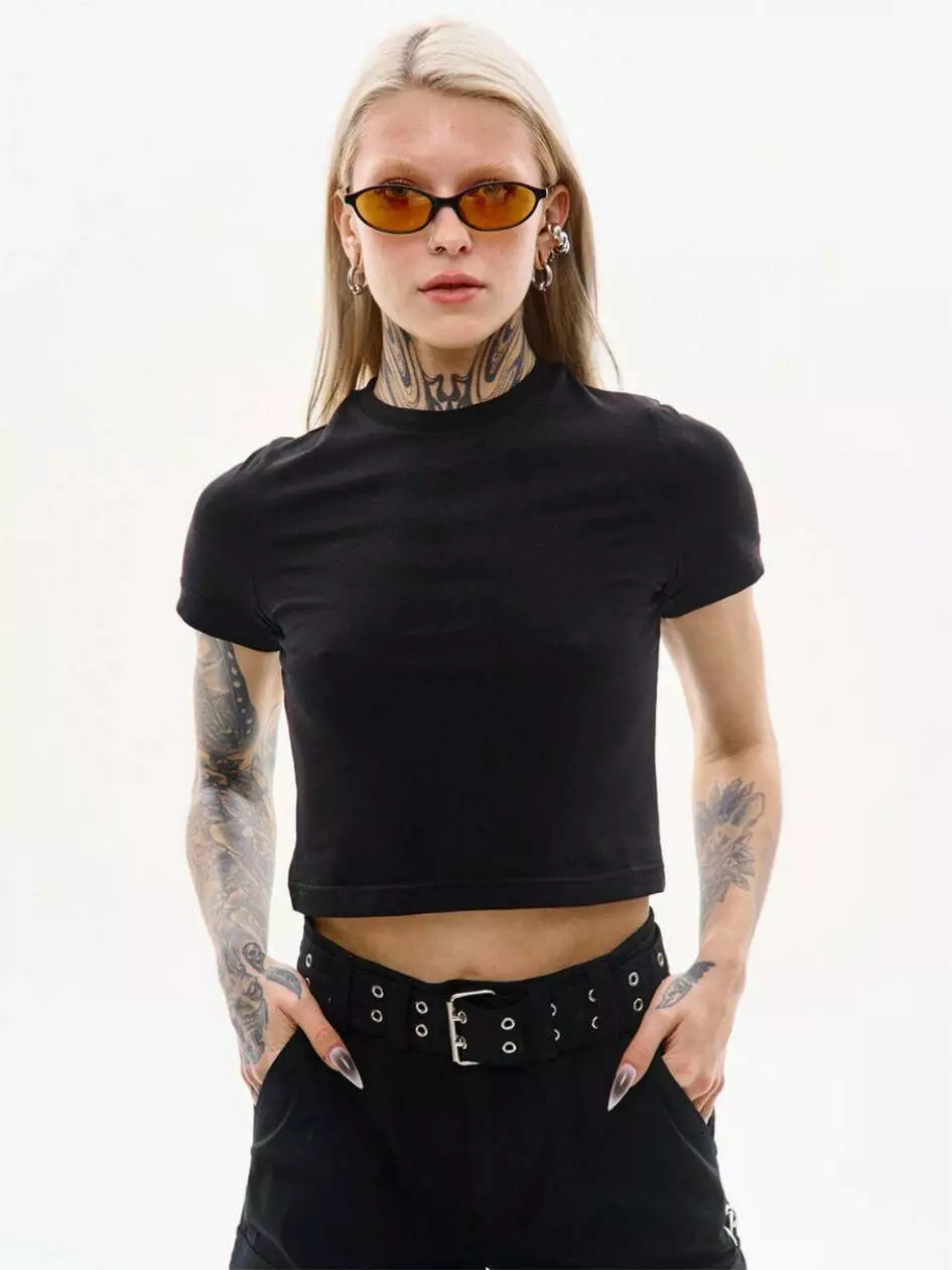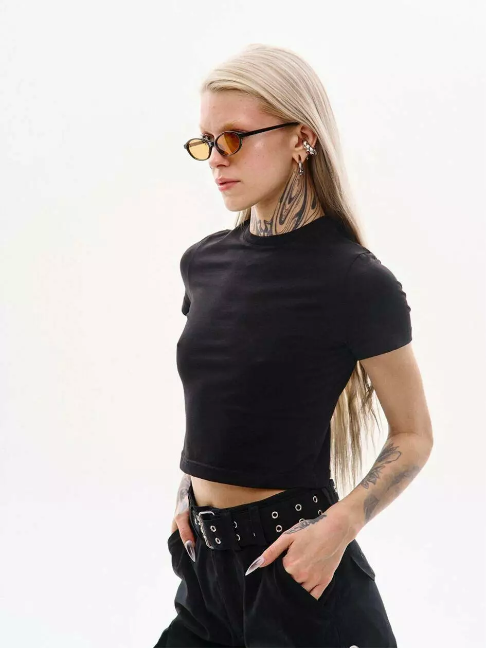 Базовий топ слім посадки з коротким рукавом. Горловина виробу