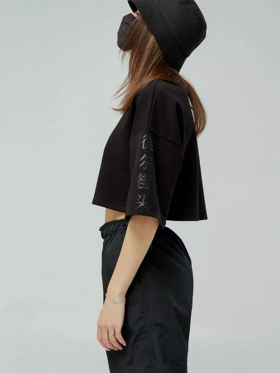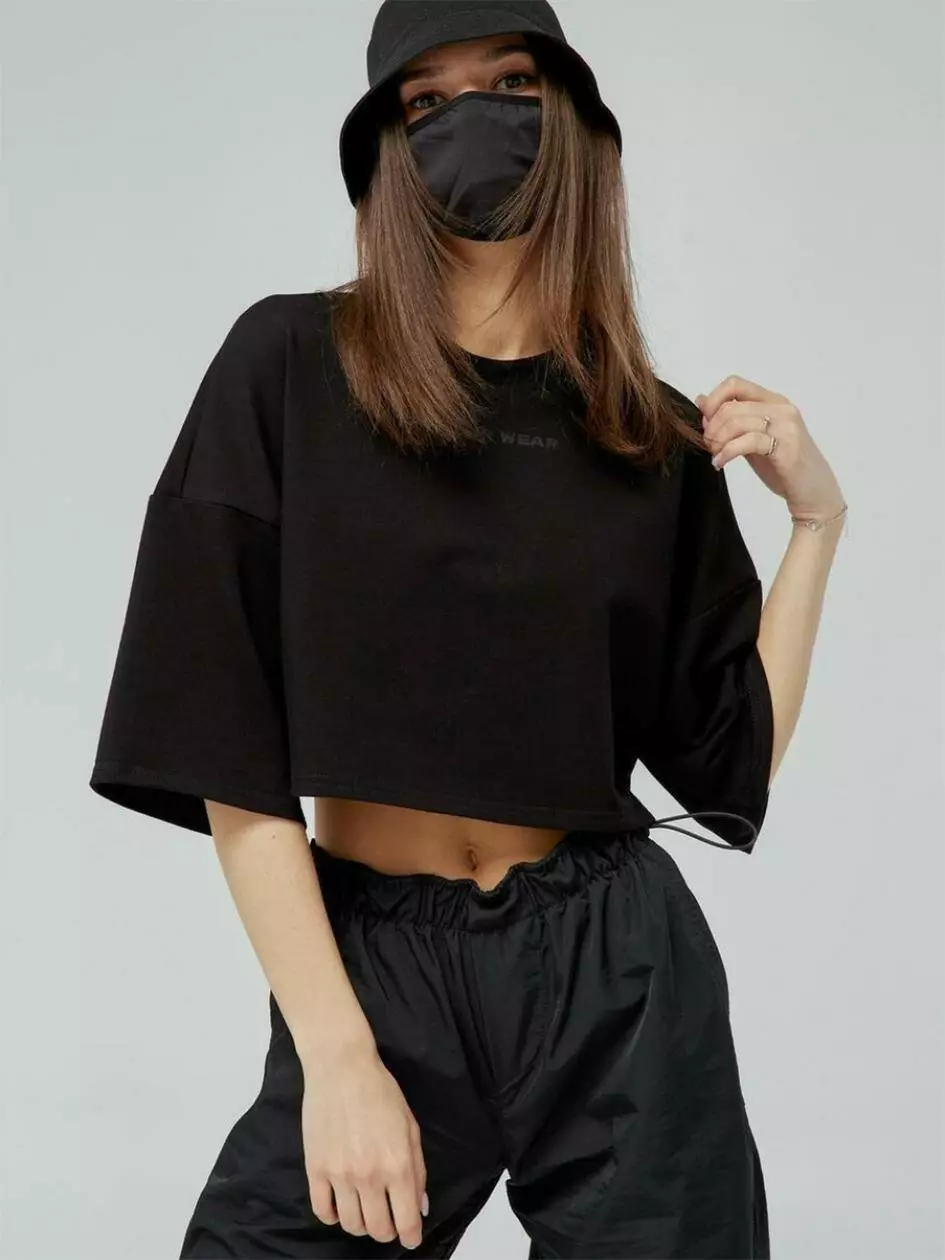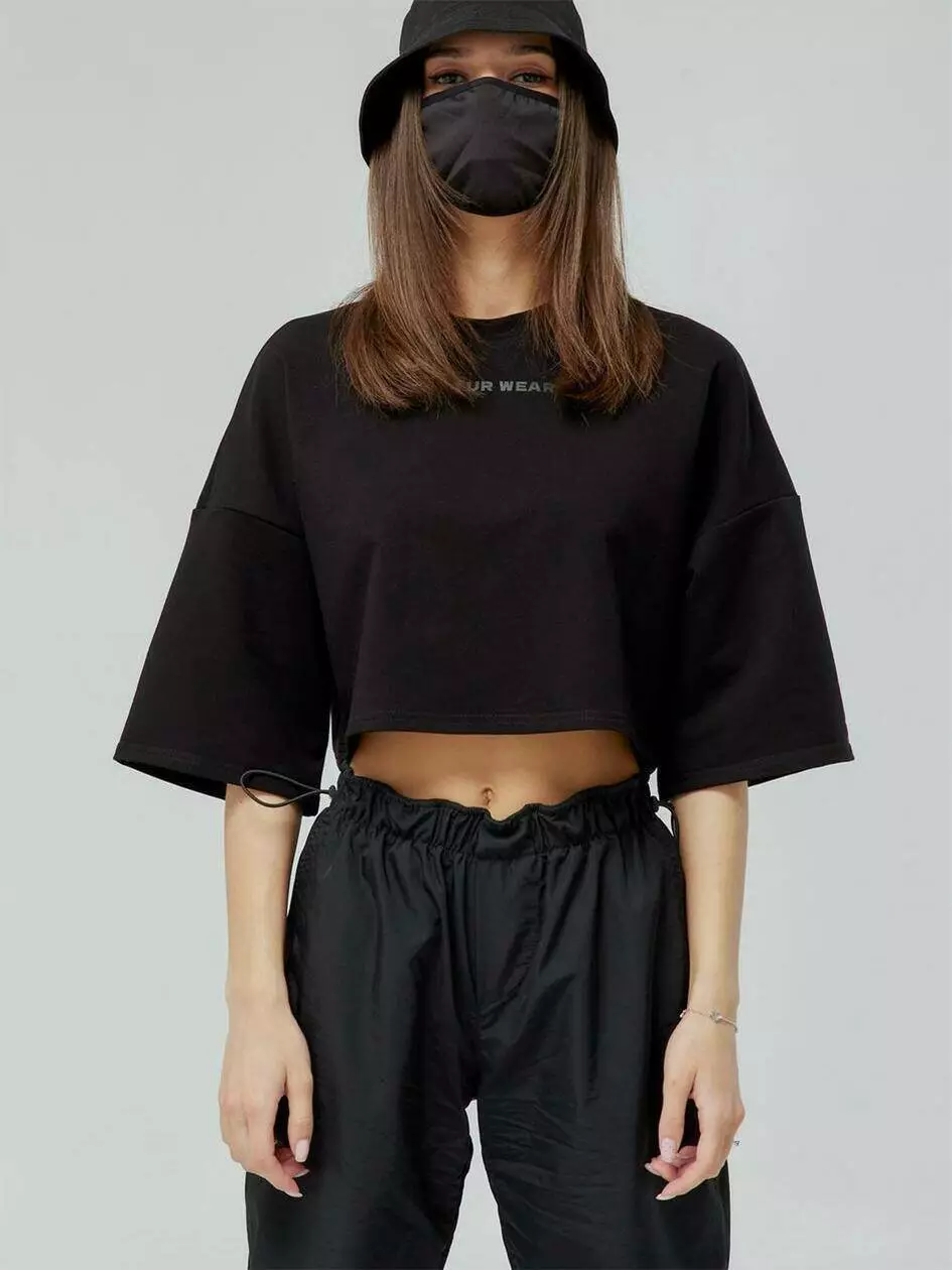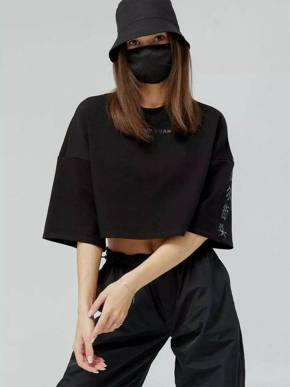 Укорочена футболка вільного крою з подовженим рукавом, що додає