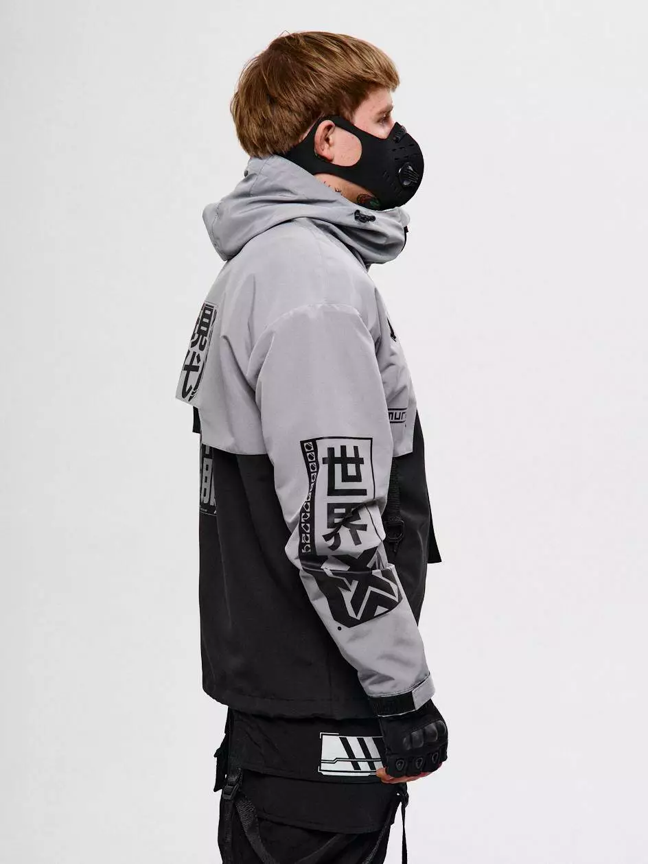 Вітрівка з принтами "Даркнет", сірий з чорним