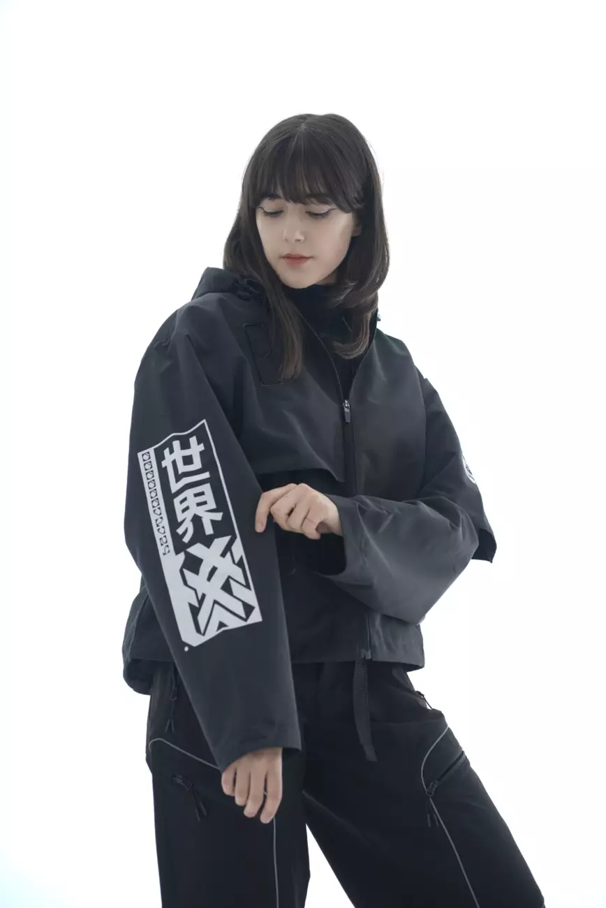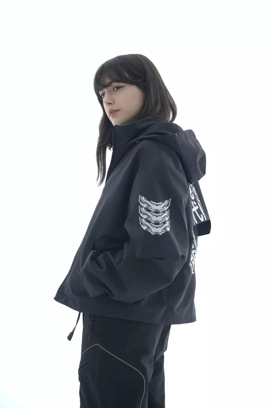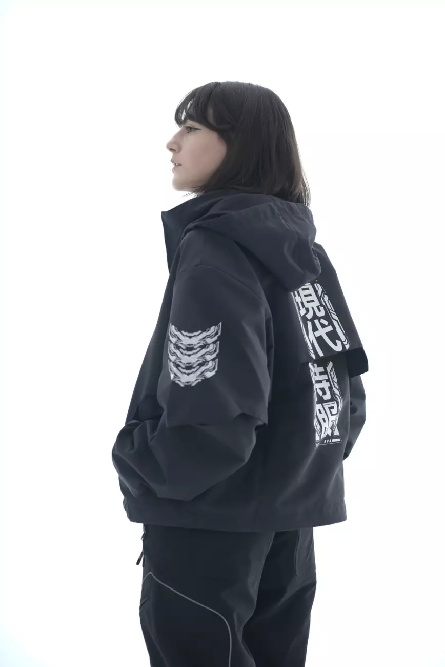 кіберпанк з написом ієрогліфами: Броня сучасного самурая. Капюшон