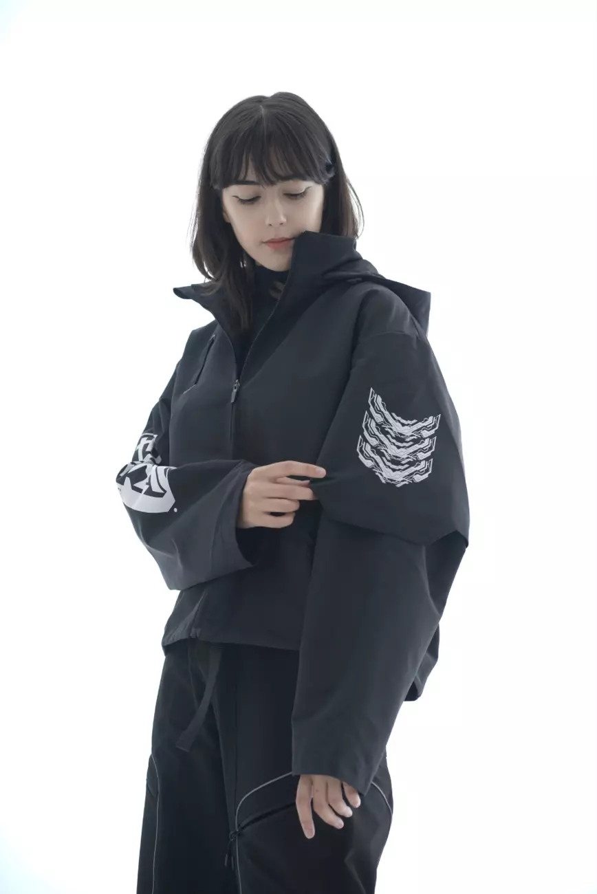 з фастексом. На накладці рукава та на спинці — принти у стилі