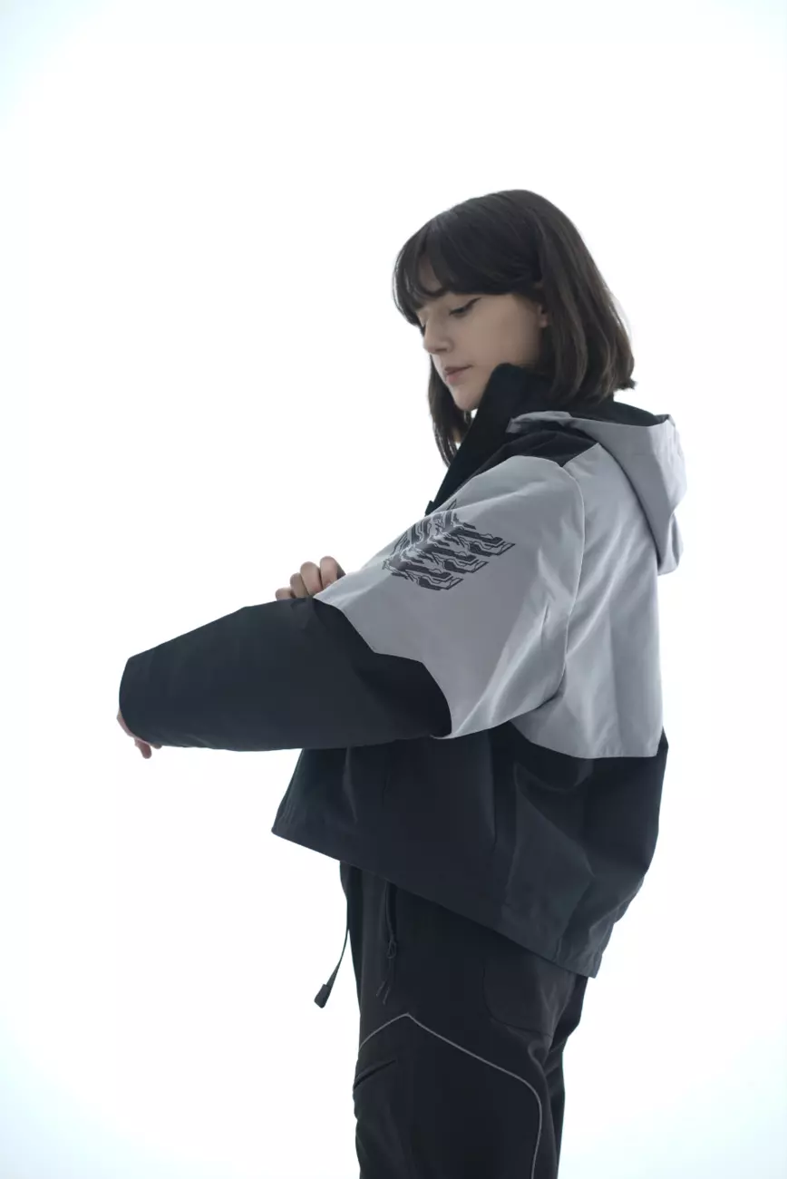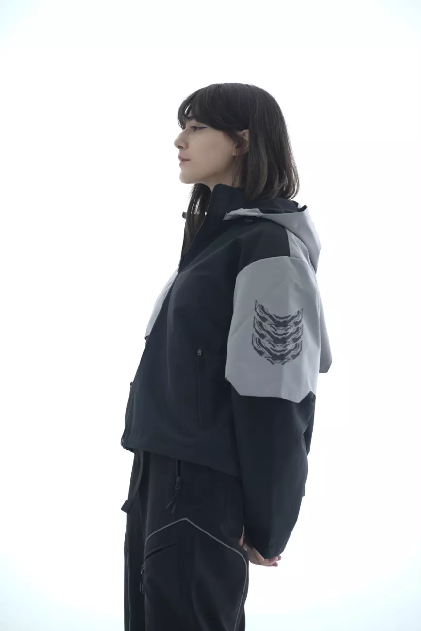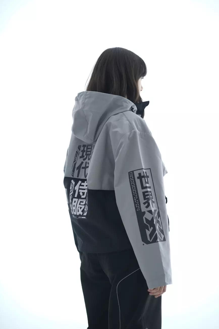 Модель має внутрішню кишеню на блискавці та чотири зовнішні: дві нижні кишені на блискавках, нагрудну з фастексом і кишеню на рукаві з фастексом. На накладці рукава та на спинці — принти у стилі кіберпанк з написом ієрогліфами: Броня сучасного самурая. Капюшон регулюється по вертикалі, низ виробу — за допомогою еластичного шнура.