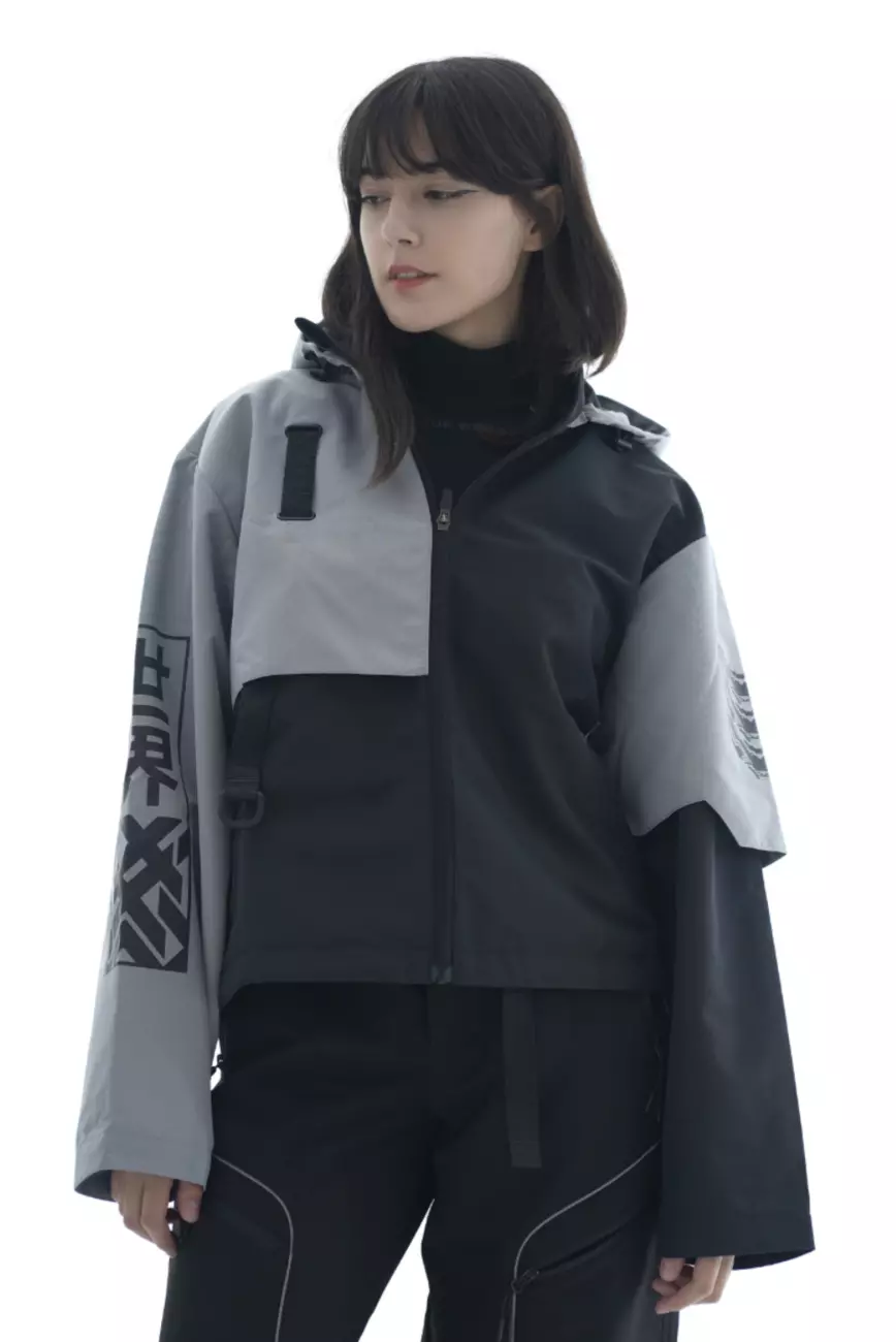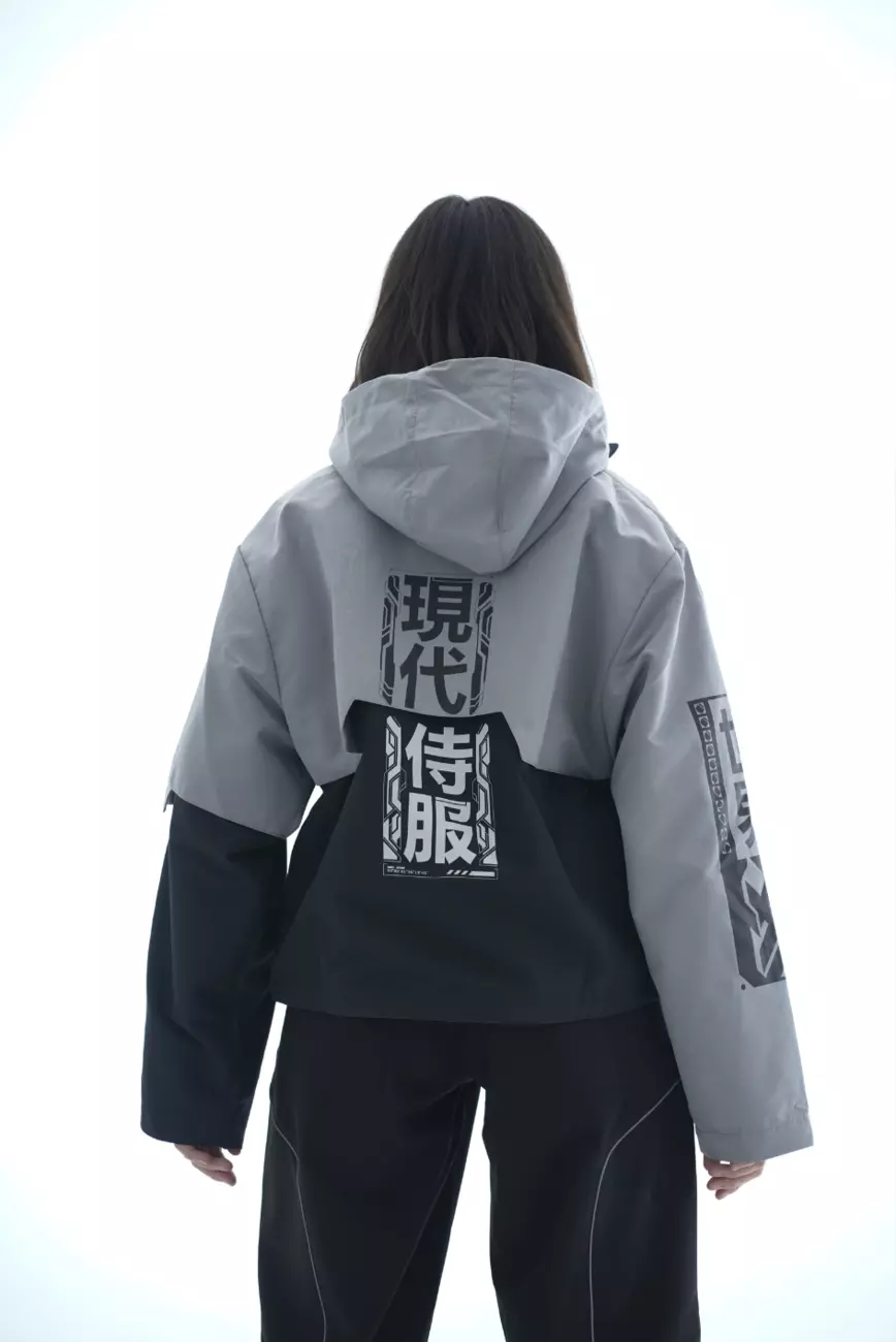 Вітрівка жіноча в стилі кіберпанк "Argent", сірий з чорним