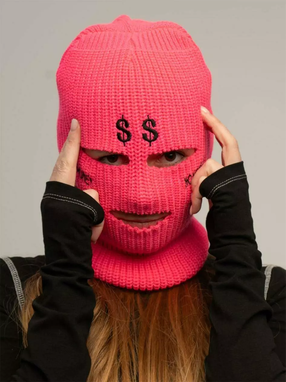 В'язана балаклава з вишивкою "Долар", рожевий